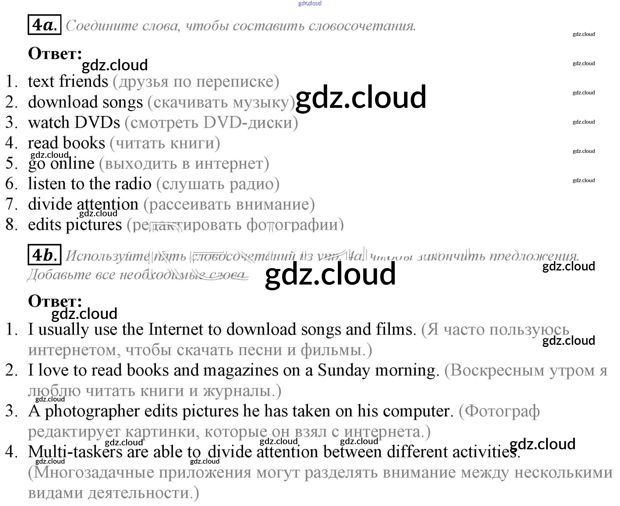 Ответ на задание 4 Рабочая тетрадь Английский язык  за 8 (восьмой) класс Ваулина, Дули, Подоляко, Эванс Spotlight  2016