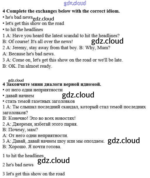 Ответ на задание 4 Рабочая тетрадь Английский язык  за 8 (восьмой) класс Ваулина, Дули, Подоляко, Эванс Spotlight  2016