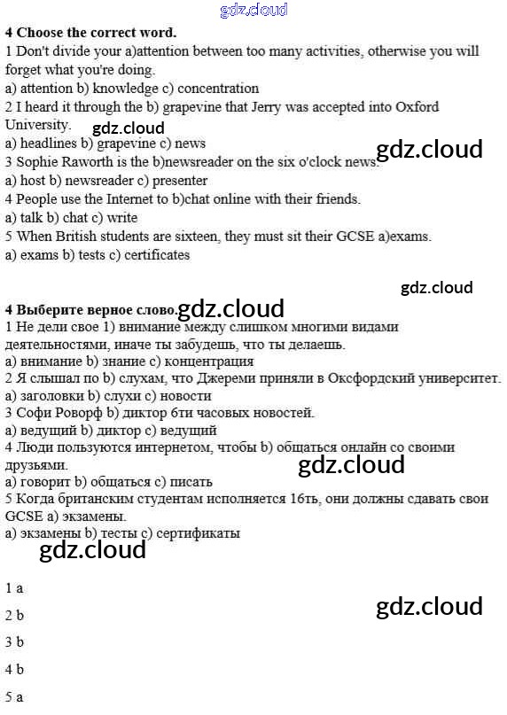Ответ на задание 4 Рабочая тетрадь Английский язык  за 8 (восьмой) класс Ваулина, Дули, Подоляко, Эванс Spotlight  2016