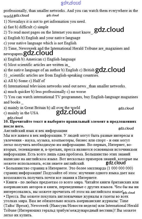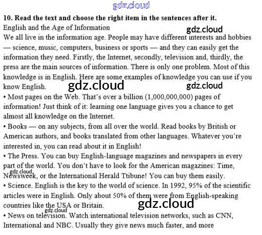 Ответ на задание 10 Рабочая тетрадь Английский язык  за 8 (восьмой) класс Афанасьева, Михеева Новый курс  2017 Часть 1, 2