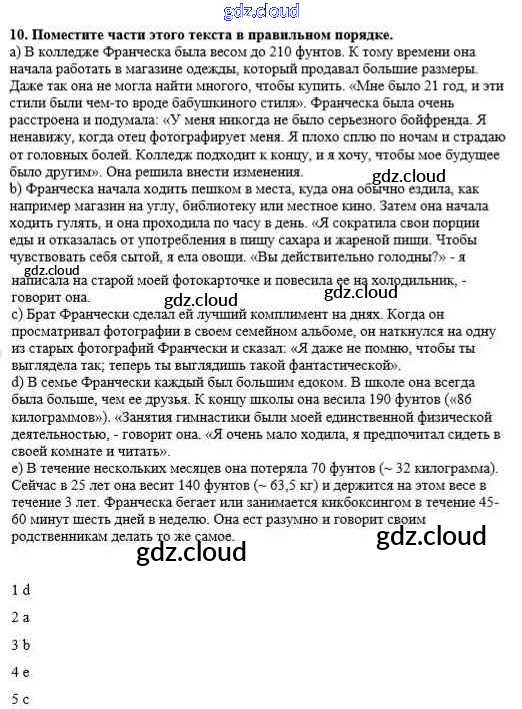 Ответ на задание 10 Рабочая тетрадь Английский язык  за 8 (восьмой) класс Афанасьева, Михеева Новый курс  2017 Часть 1, 2