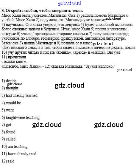 Ответ на задание 8 Рабочая тетрадь Английский язык  за 8 (восьмой) класс Афанасьева, Михеева Новый курс  2017 Часть 1, 2