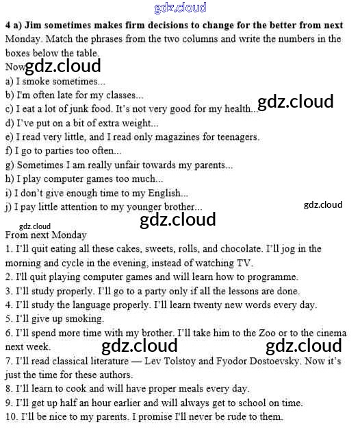 Ответ на задание 4 Рабочая тетрадь Английский язык  за 8 (восьмой) класс Биболетова, Бабушис, Кларк Enjoy English  2015, 2016
