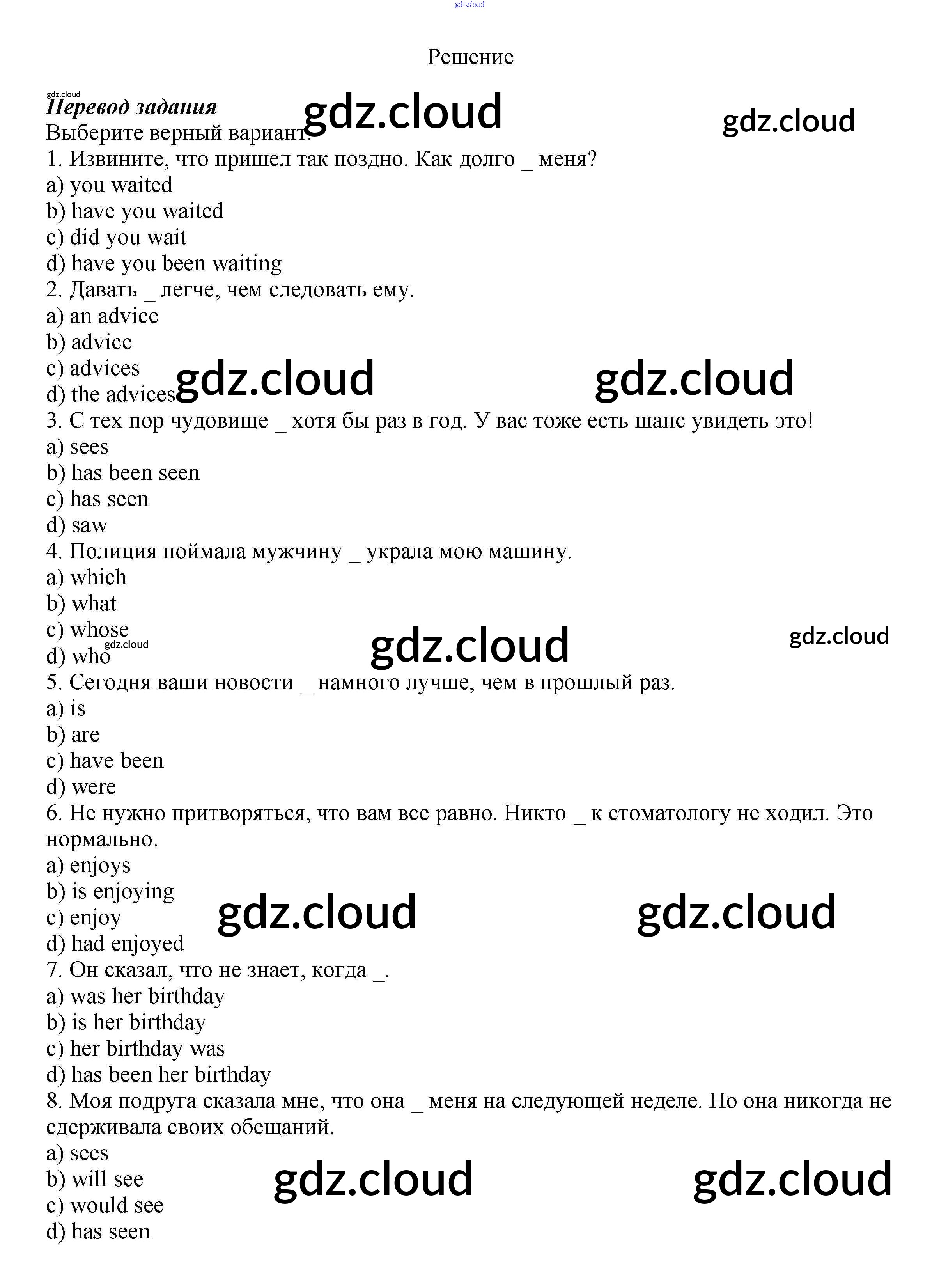 Ответ на задание 1 Рабочая тетрадь Английский язык  за 8 (восьмой) класс Биболетова, Бабушис, Кларк Enjoy English  2015, 2016