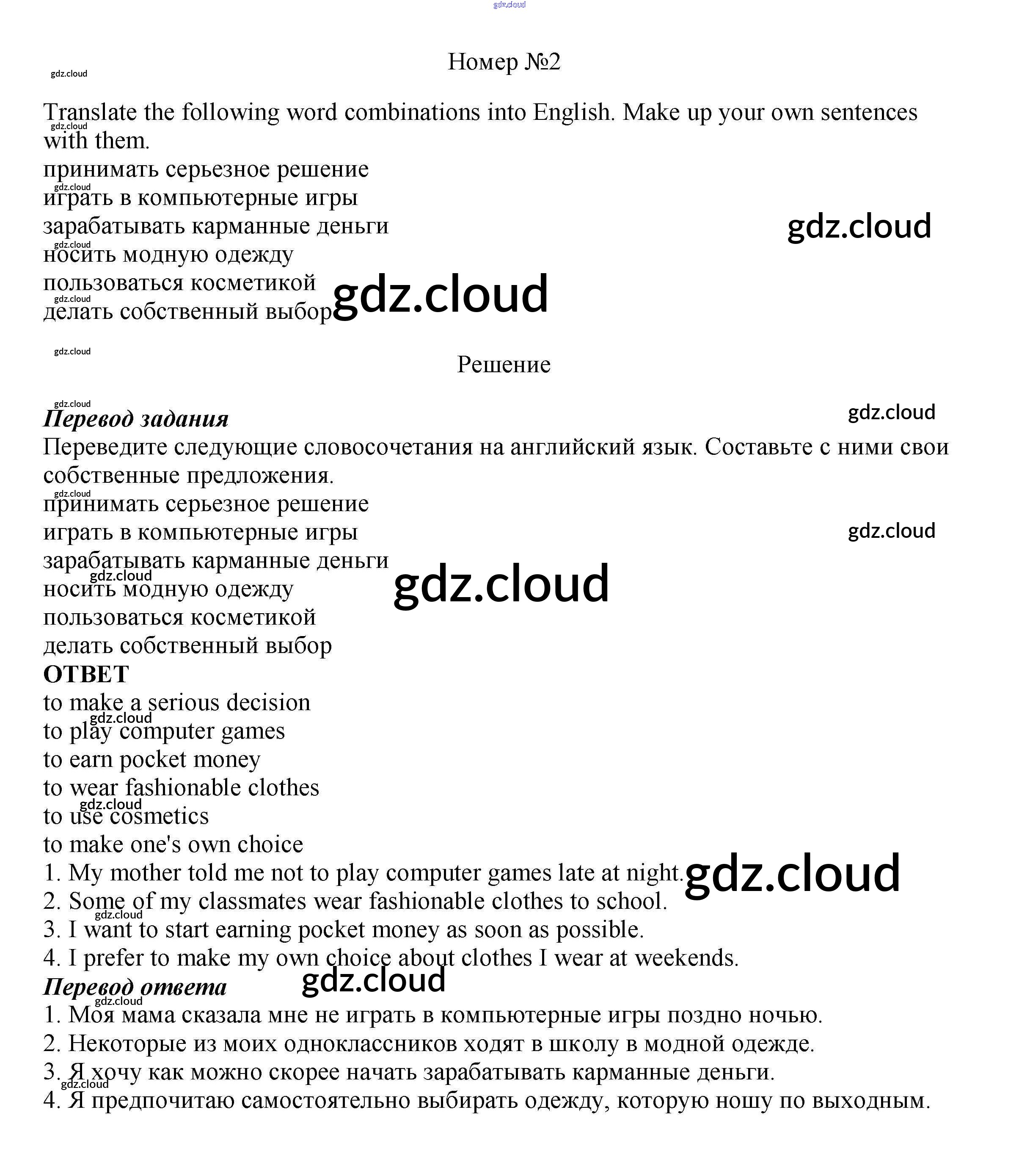Ответ на задание 2 Рабочая тетрадь Английский язык  за 8 (восьмой) класс Биболетова, Бабушис, Кларк Enjoy English  2015, 2016
