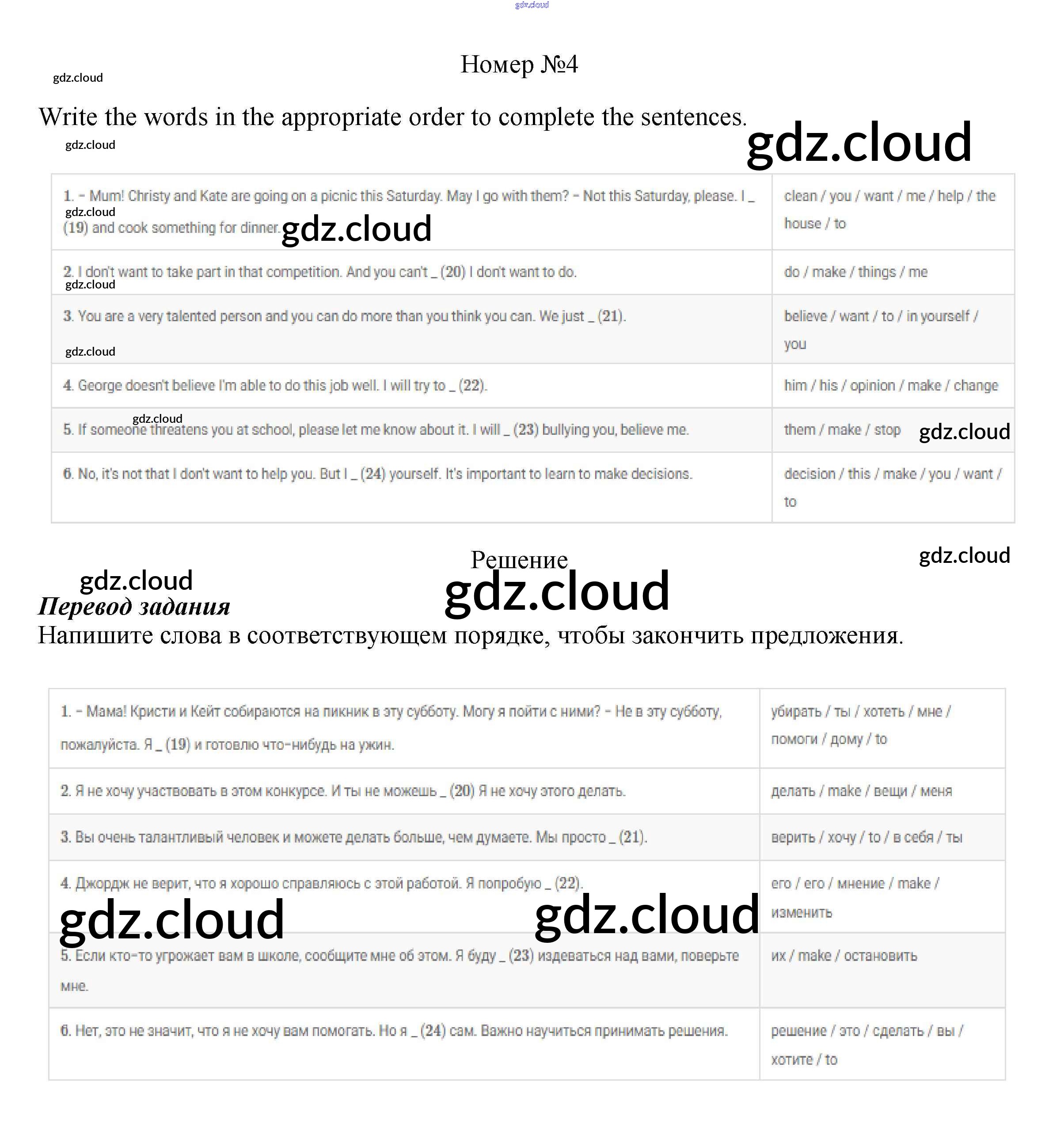 Ответ на задание 4 Рабочая тетрадь Английский язык  за 8 (восьмой) класс Биболетова, Бабушис, Кларк Enjoy English  2015, 2016