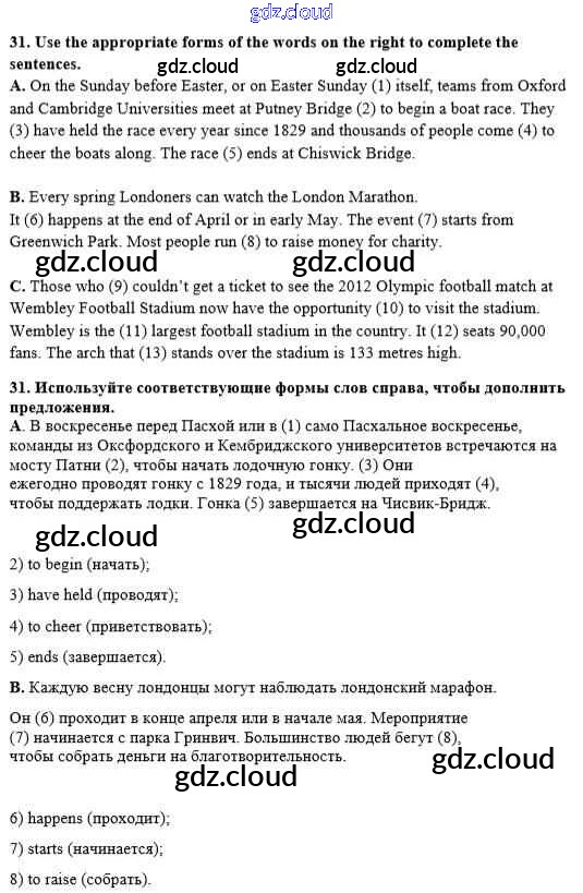 Ответ на задание 31 Рабочая тетрадь Английский язык  за 8 (восьмой) класс Афанасьева, Михеева, Баранова Rainbow  2016