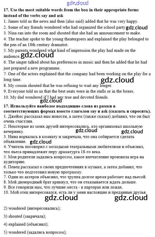 Ответ на задание 17 Рабочая тетрадь Английский язык  за 8 (восьмой) класс Афанасьева, Михеева, Баранова Rainbow  2016