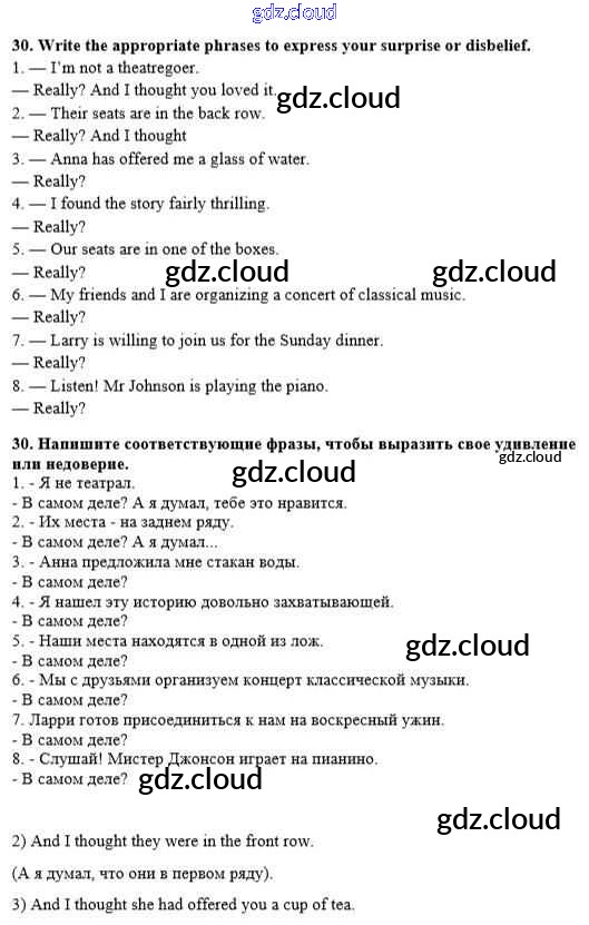 Ответ на задание 30 Рабочая тетрадь Английский язык  за 8 (восьмой) класс Афанасьева, Михеева, Баранова Rainbow  2016