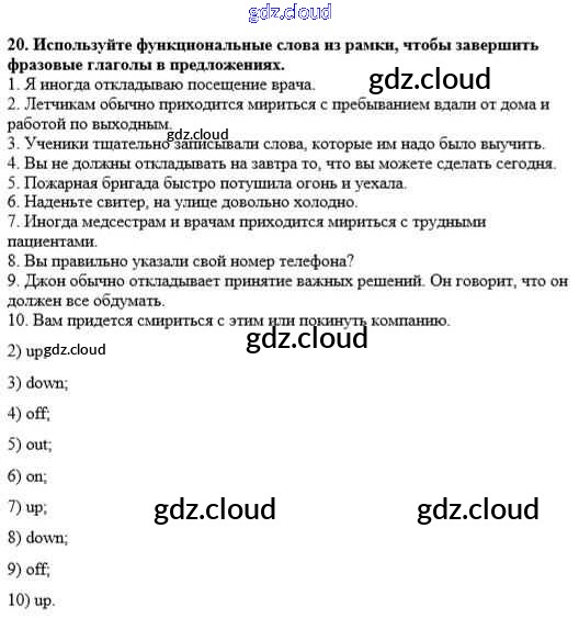 Ответ на задание 20 Рабочая тетрадь Английский язык  за 8 (восьмой) класс Афанасьева, Михеева, Баранова Rainbow  2016