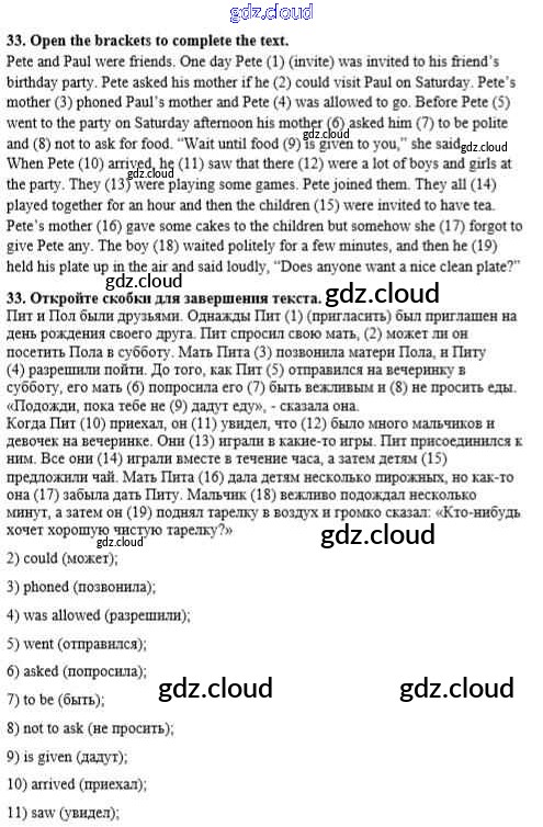 Ответ на задание 33 Рабочая тетрадь Английский язык  за 8 (восьмой) класс Афанасьева, Михеева, Баранова Rainbow  2016