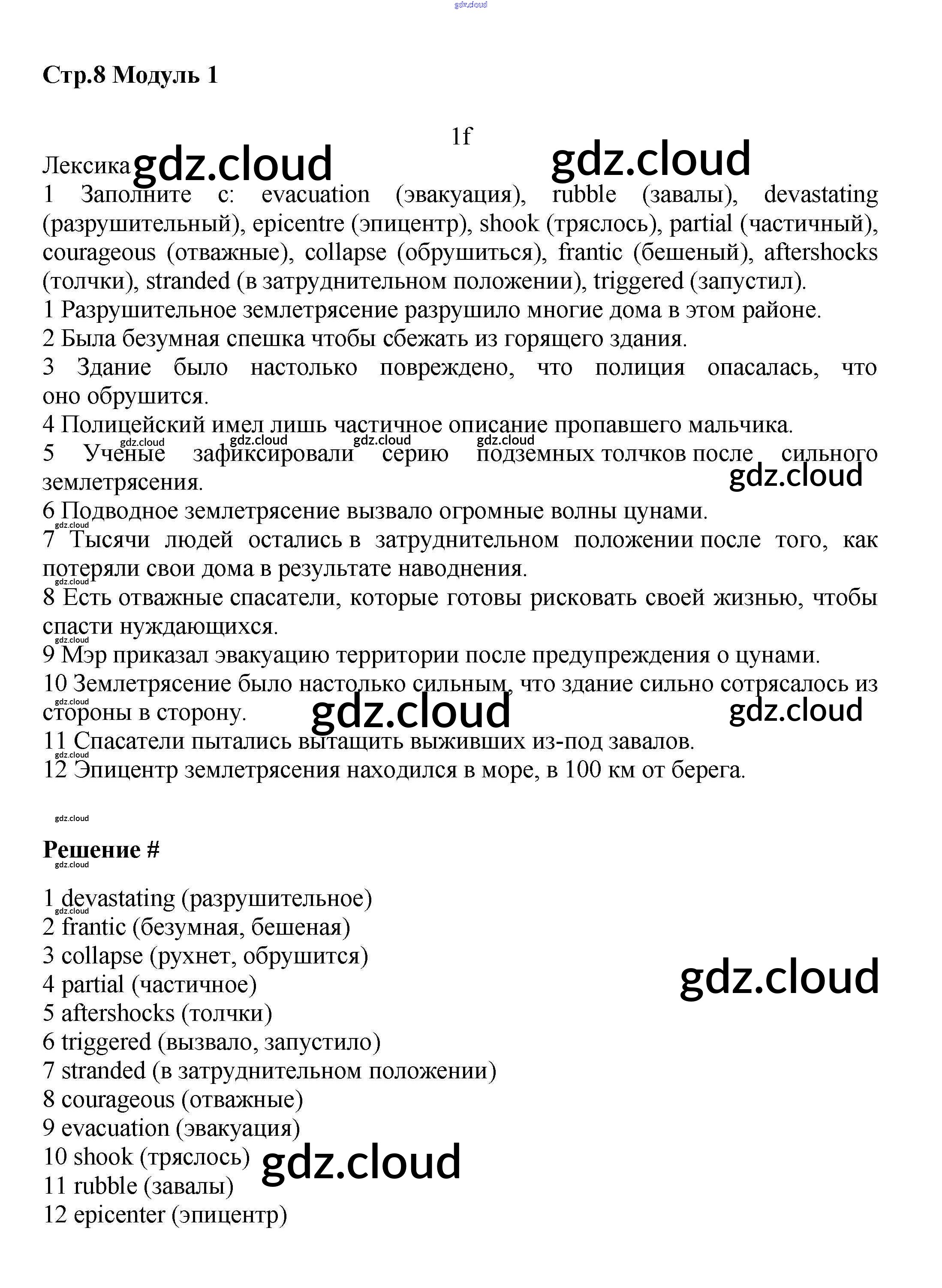 Ответ на задание стр.8 Рабочая тетрадь Английский язык  за 8 (восьмой) класс Баранова, Дули, Эванс, Копылова, Мильруд Starlight Углубленный уровень 2015