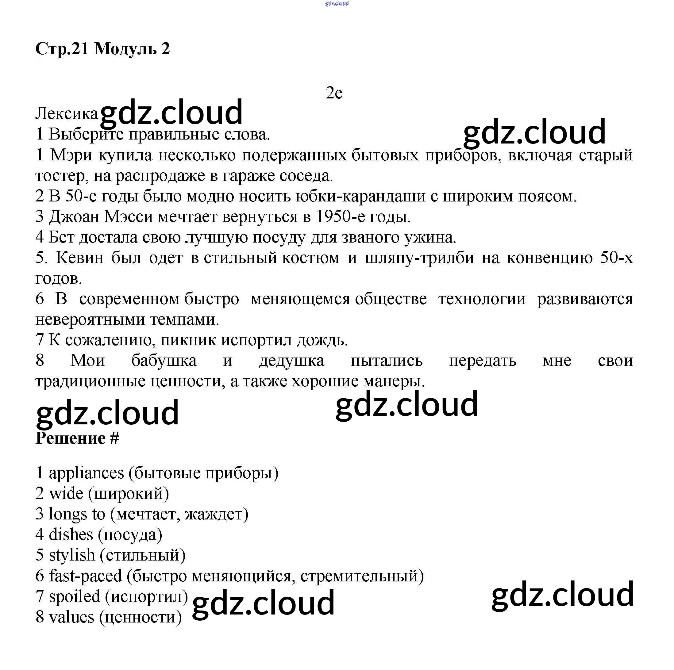 Ответ на задание стр.21 Рабочая тетрадь Английский язык  за 8 (восьмой) класс Баранова, Дули, Эванс, Копылова, Мильруд Starlight Углубленный уровень 2015