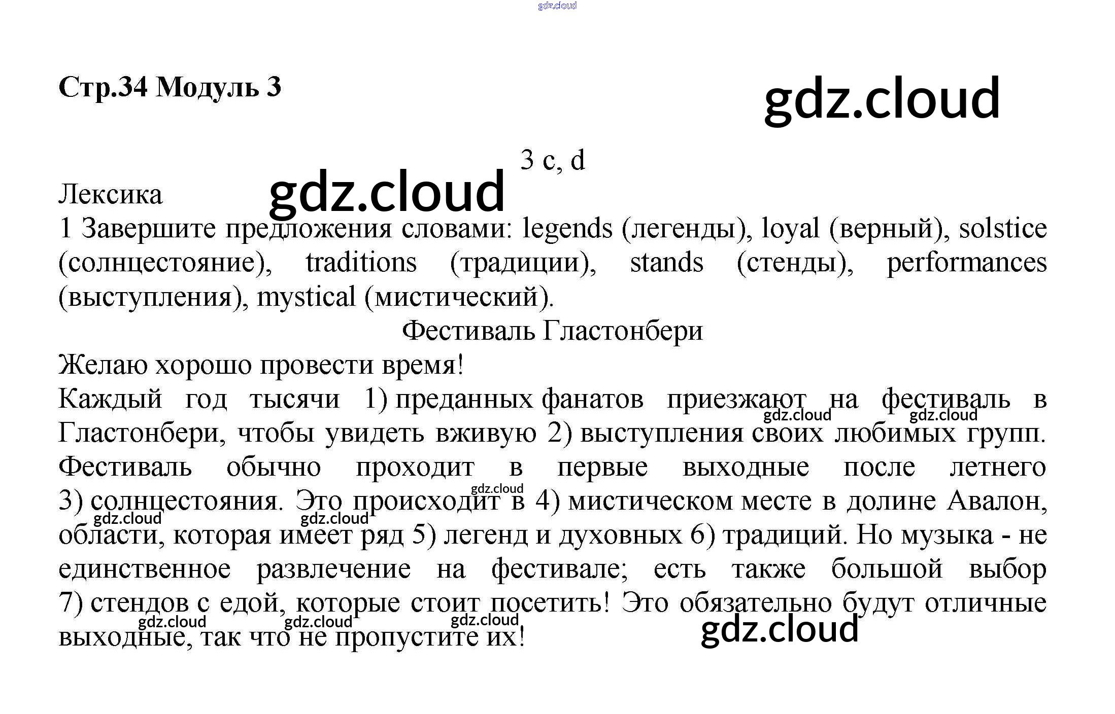 Ответ на задание стр.34 Рабочая тетрадь Английский язык  за 8 (восьмой) класс Баранова, Дули, Эванс, Копылова, Мильруд Starlight Углубленный уровень 2015