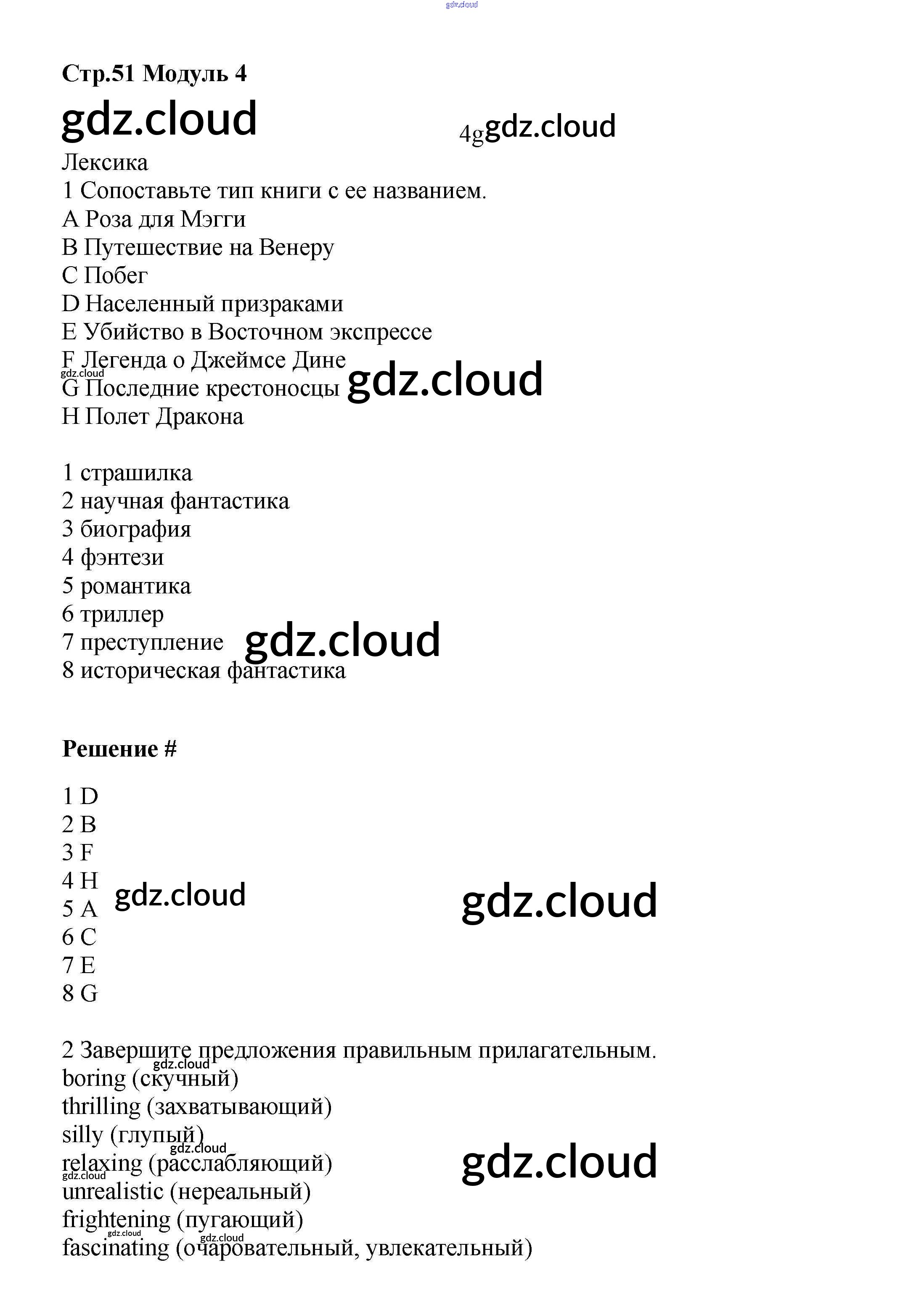 Ответ на задание стр.51 Рабочая тетрадь Английский язык  за 8 (восьмой) класс Баранова, Дули, Эванс, Копылова, Мильруд Starlight Углубленный уровень 2015