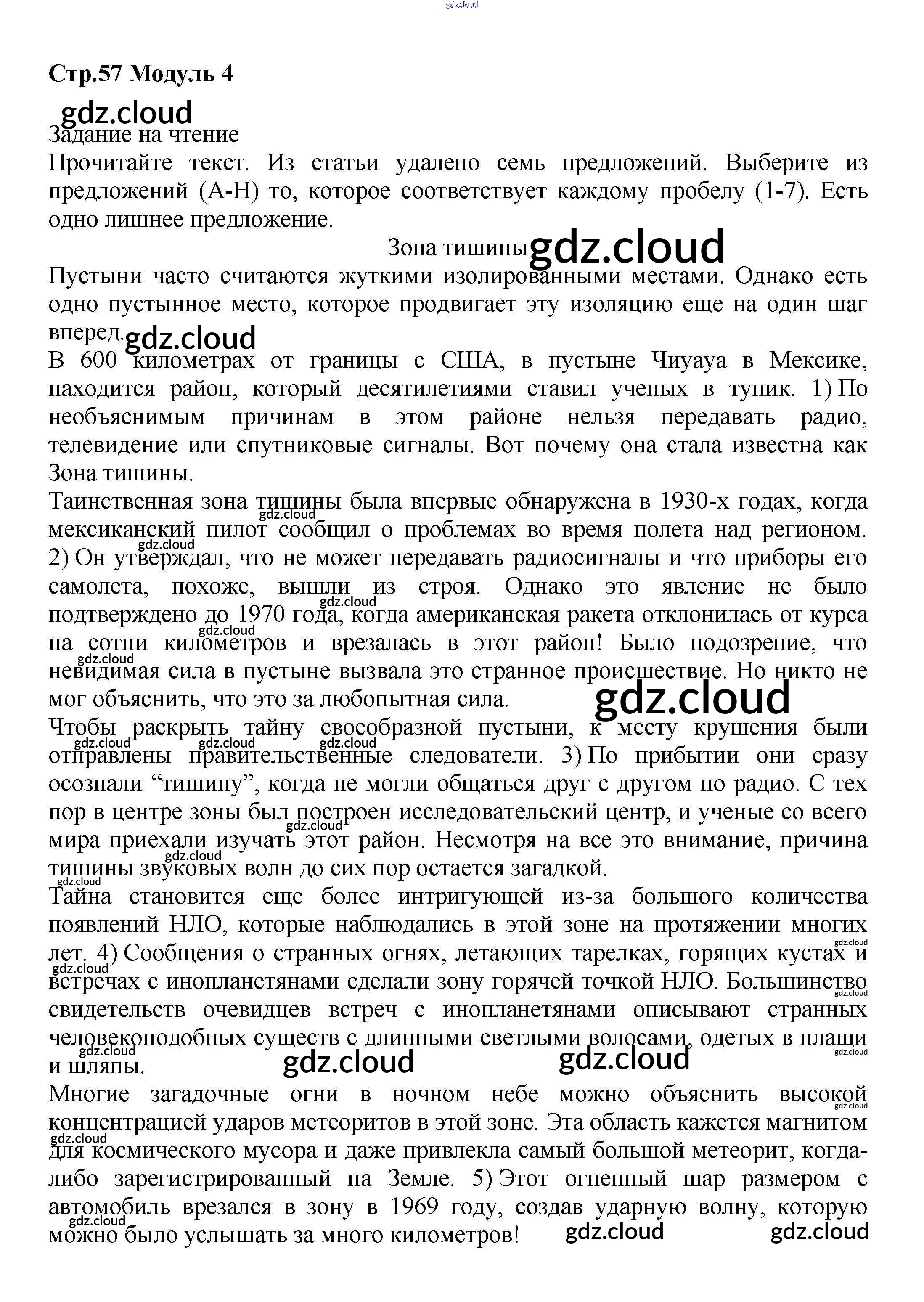 Ответ на задание стр.57 Рабочая тетрадь Английский язык  за 8 (восьмой) класс Баранова, Дули, Эванс, Копылова, Мильруд Starlight Углубленный уровень 2015