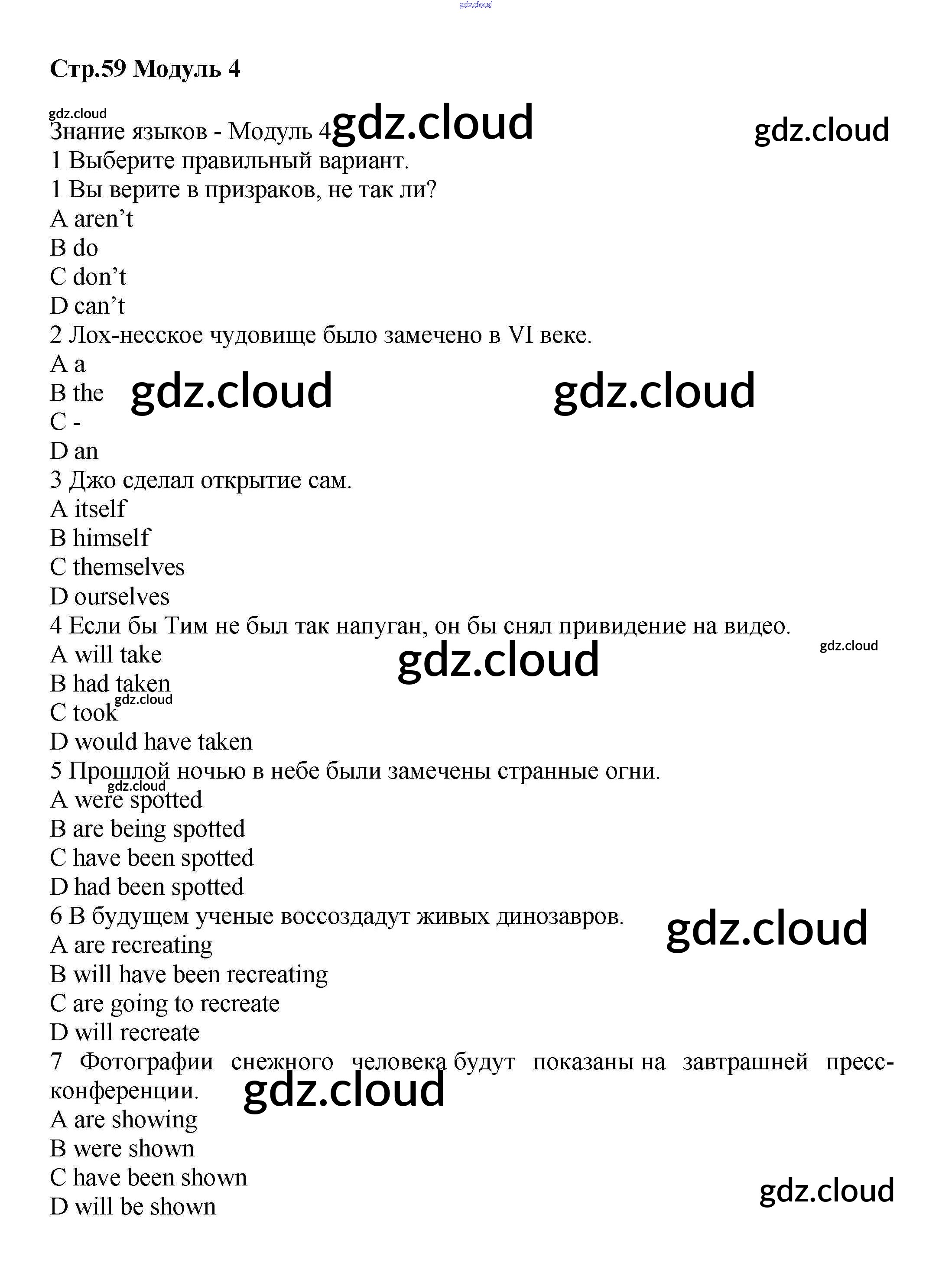 Ответ на задание стр.59 Рабочая тетрадь Английский язык  за 8 (восьмой) класс Баранова, Дули, Эванс, Копылова, Мильруд Starlight Углубленный уровень 2015