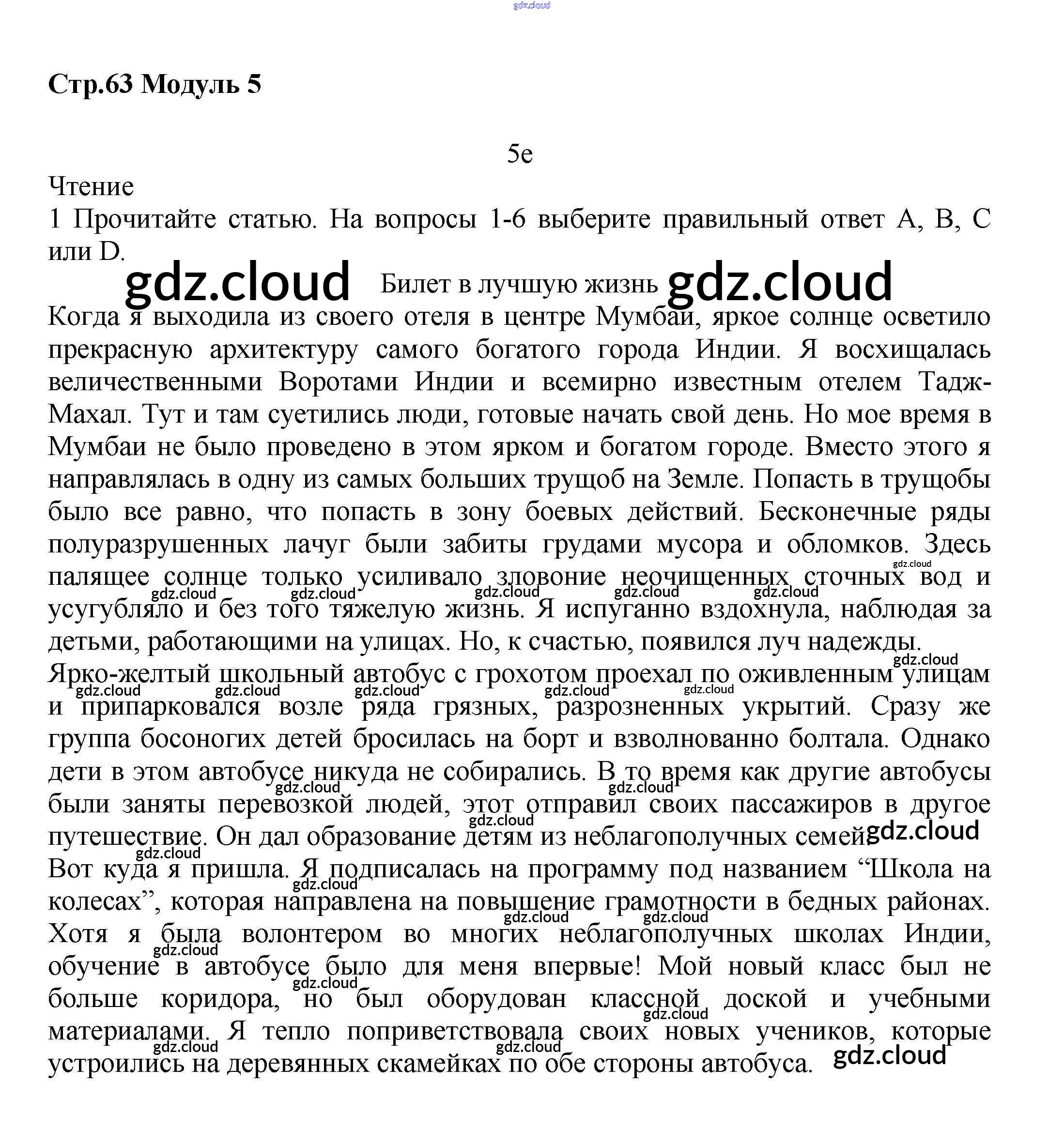 Ответ на задание стр.63 Рабочая тетрадь Английский язык  за 8 (восьмой) класс Баранова, Дули, Эванс, Копылова, Мильруд Starlight Углубленный уровень 2015