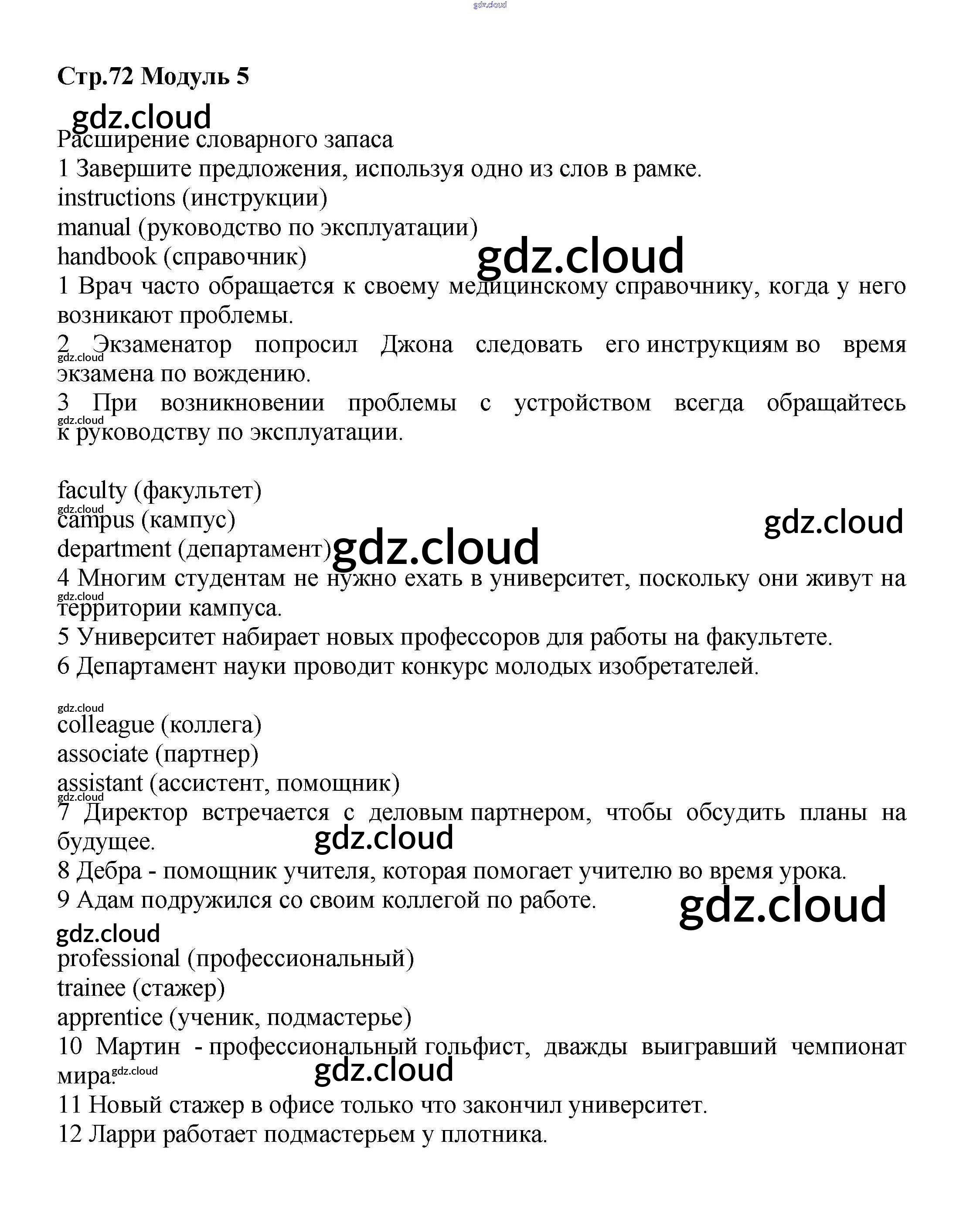 Ответ на задание стр.72 Рабочая тетрадь Английский язык за 8 (восьмой) класс Баранова, Дули, Эванс, Копылова, Мильруд Starlight Углубленный уровень 2015