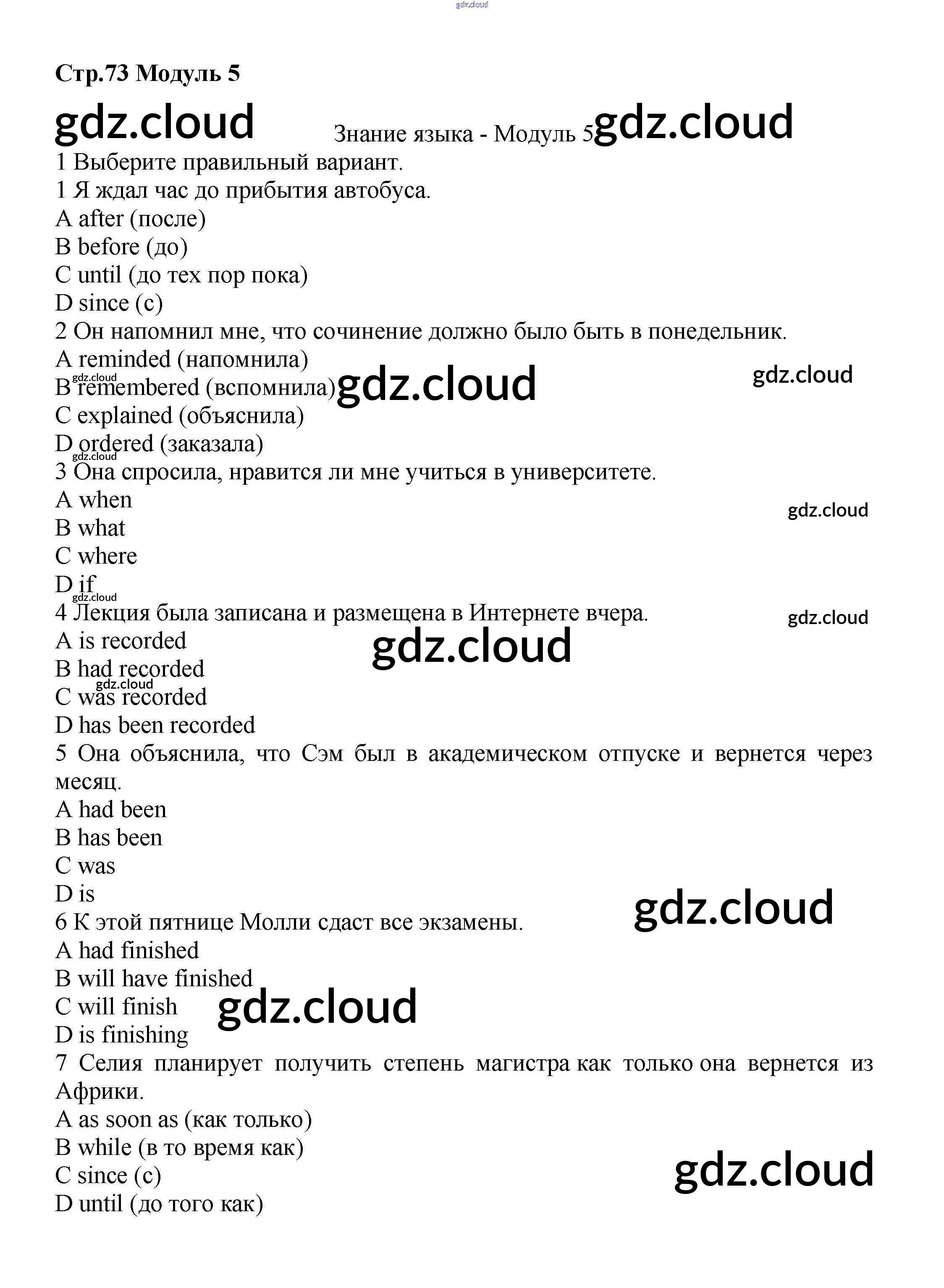 Ответ на задание стр.73 Рабочая тетрадь Английский язык  за 8 (восьмой) класс Баранова, Дули, Эванс, Копылова, Мильруд Starlight Углубленный уровень 2015