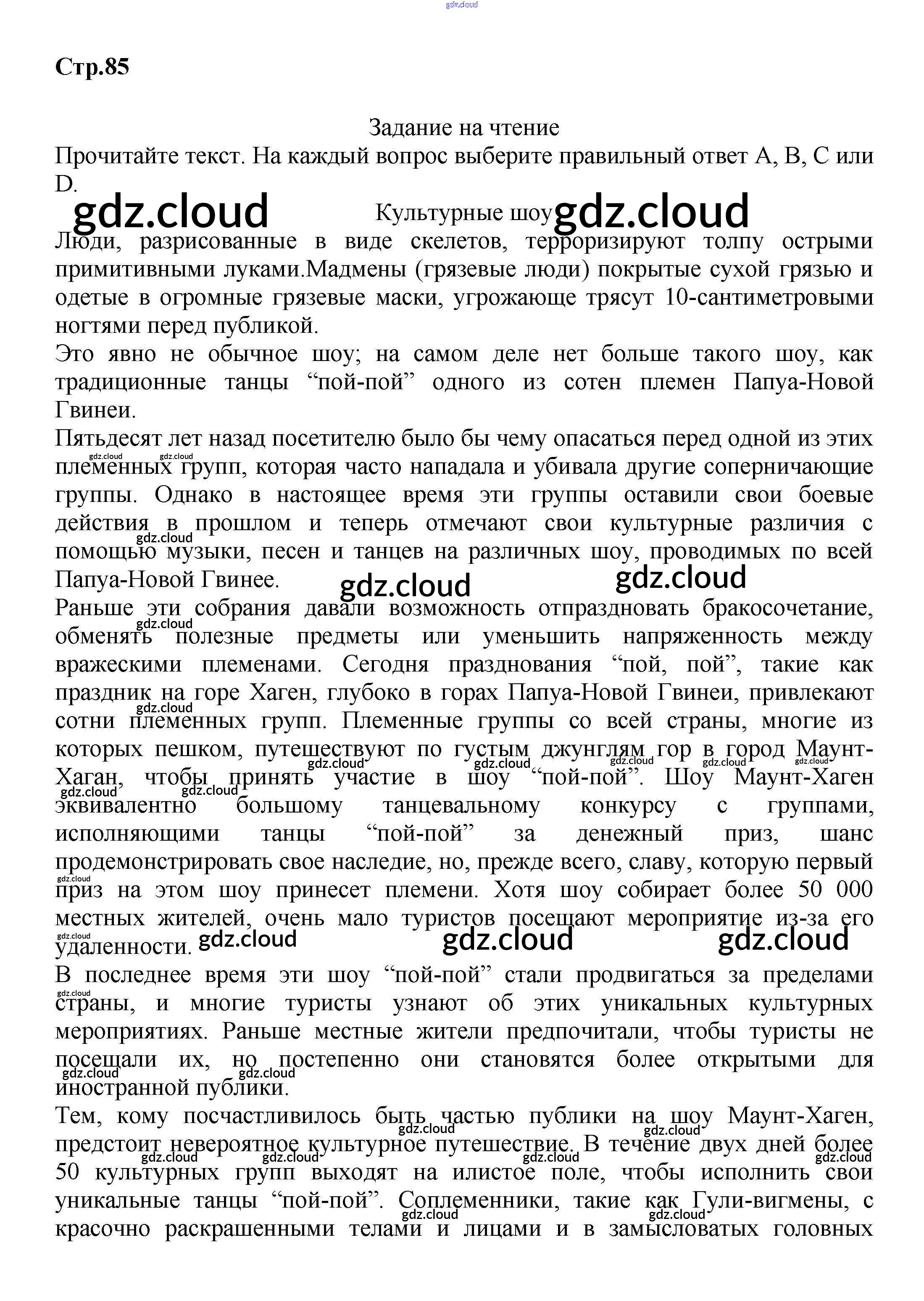Ответ на задание стр.85 Рабочая тетрадь Английский язык  за 8 (восьмой) класс Баранова, Дули, Эванс, Копылова, Мильруд Starlight Углубленный уровень 2015