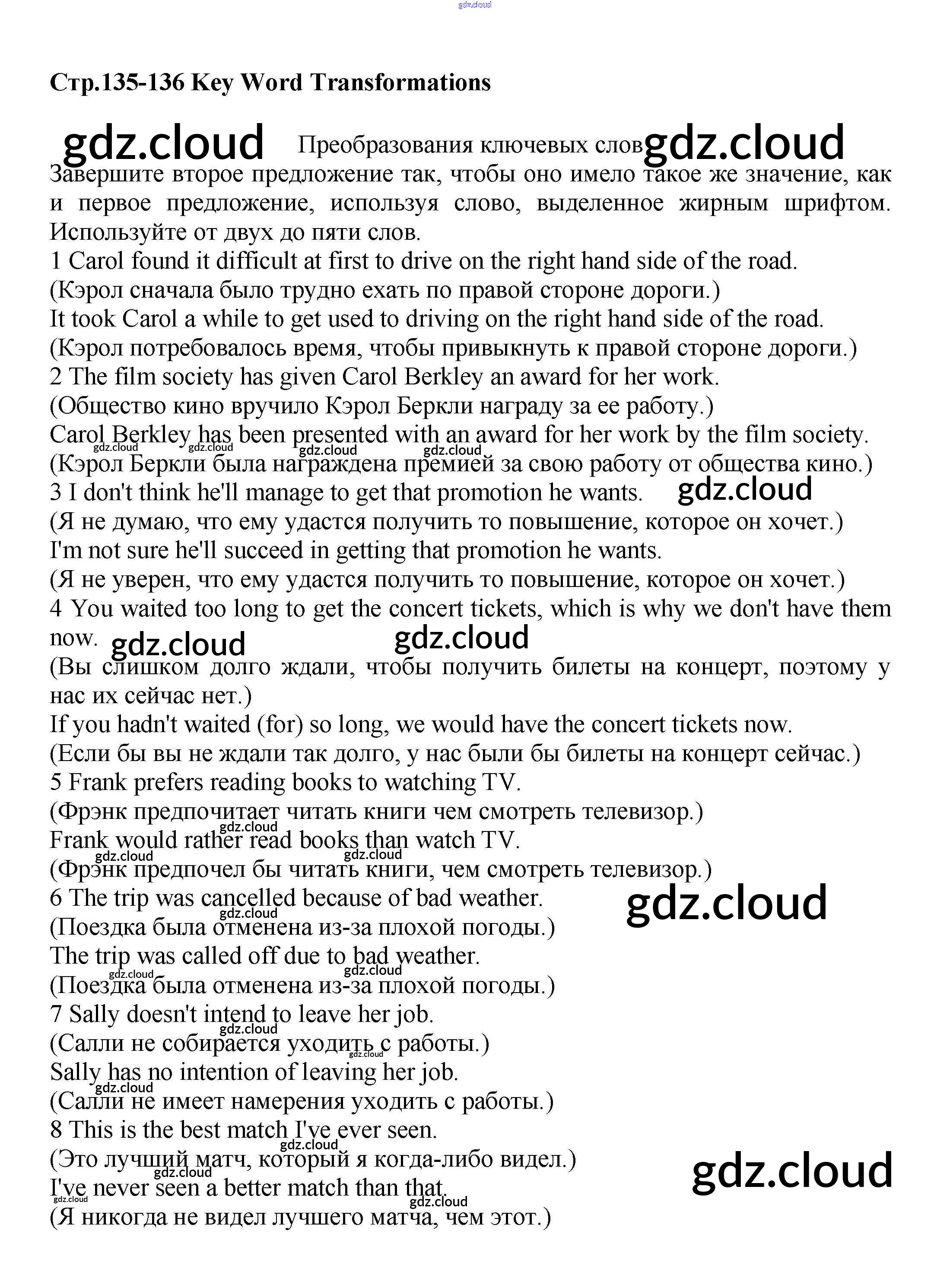 grammar bank / key word transformations / стр.135-136