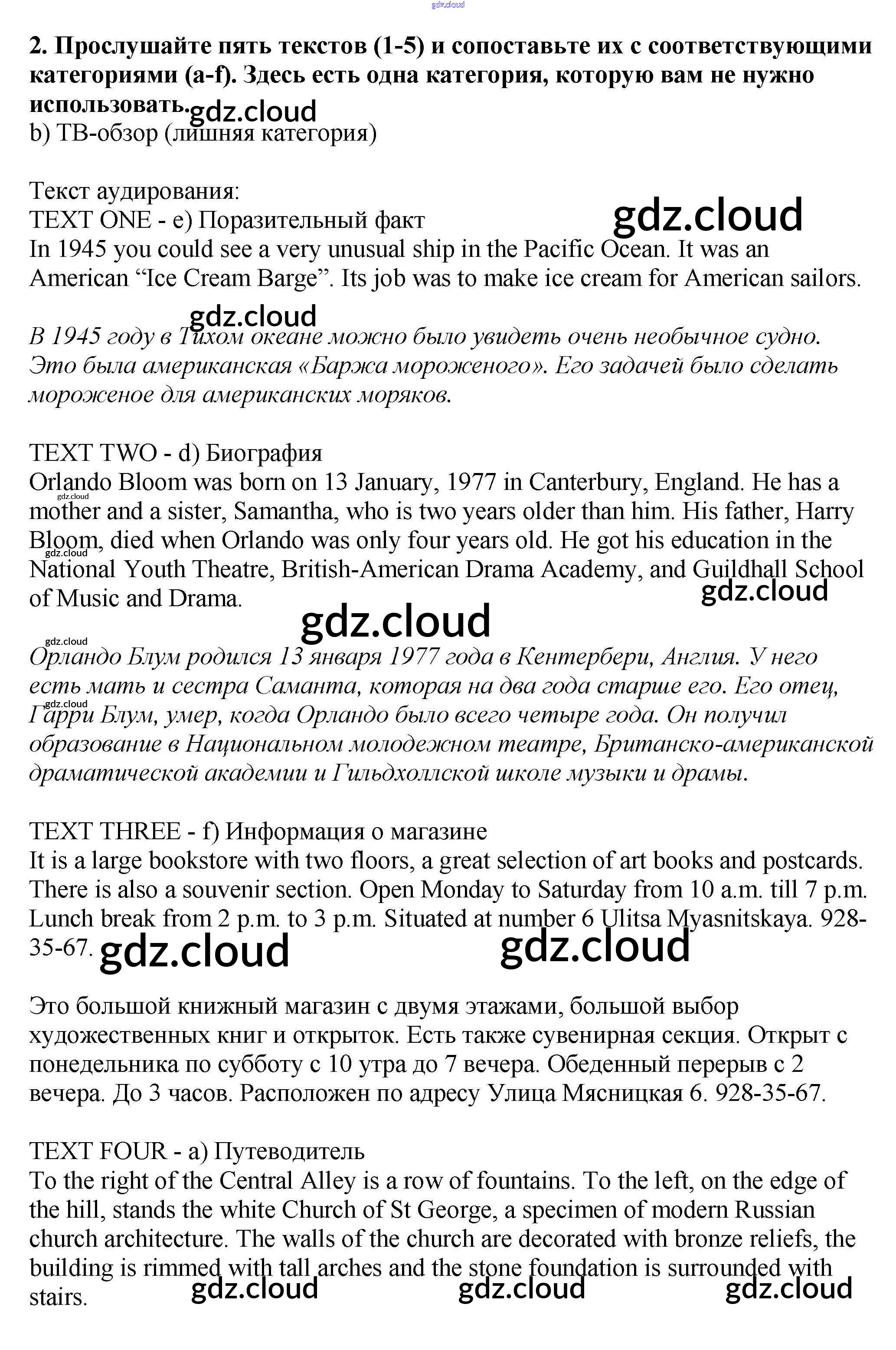 Ответ на задание 2 Рабочая тетрадь Английский язык за 9 (девятый) класс Афанасьева, Михеева Новый курс 2014 ФГОС онлайн и без номера телефона.