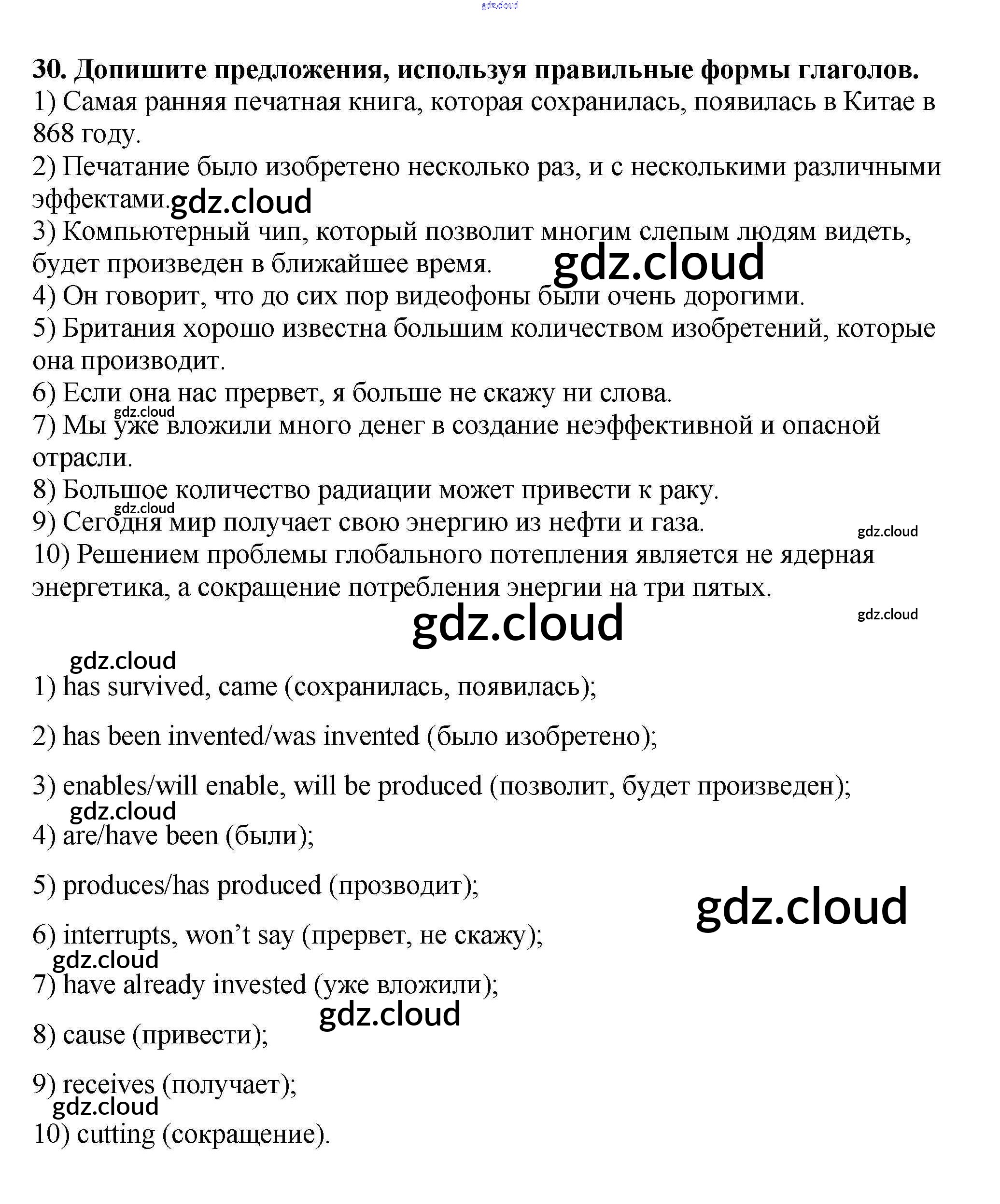 Ответ на задание 30 Рабочая тетрадь Английский язык за 9 (девятый) класс Афанасьева, Михеева Новый курс 2014