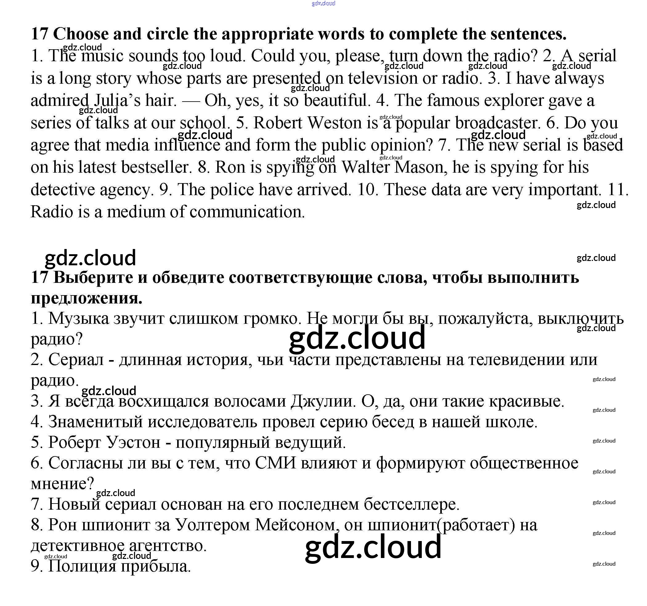 Ответ на задание 17 Рабочая тетрадь Английский язык за 9 (девятый) класс Афанасьева, Михеева, Баранова Rainbow 2016
