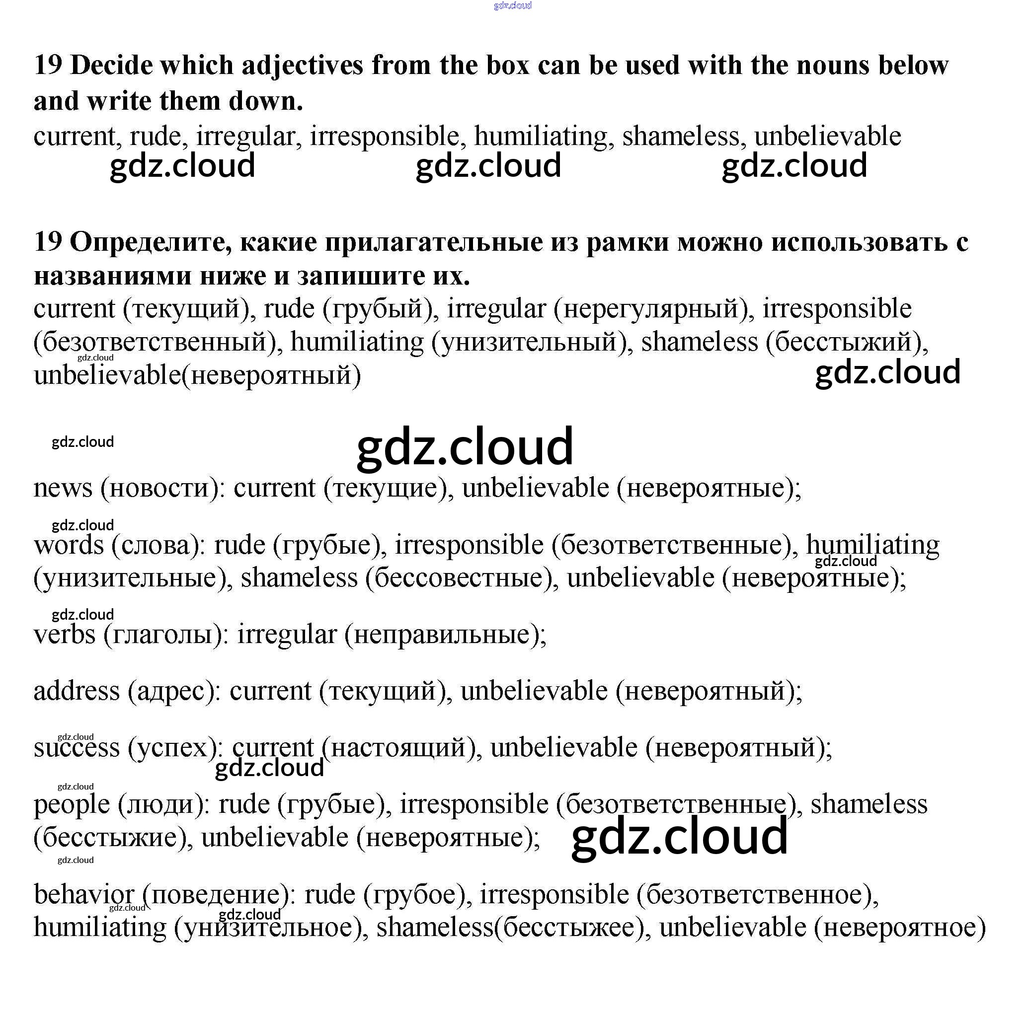 Ответ на задание 19 Рабочая тетрадь Английский язык за 9 (девятый) класс Афанасьева, Михеева, Баранова Rainbow 2016