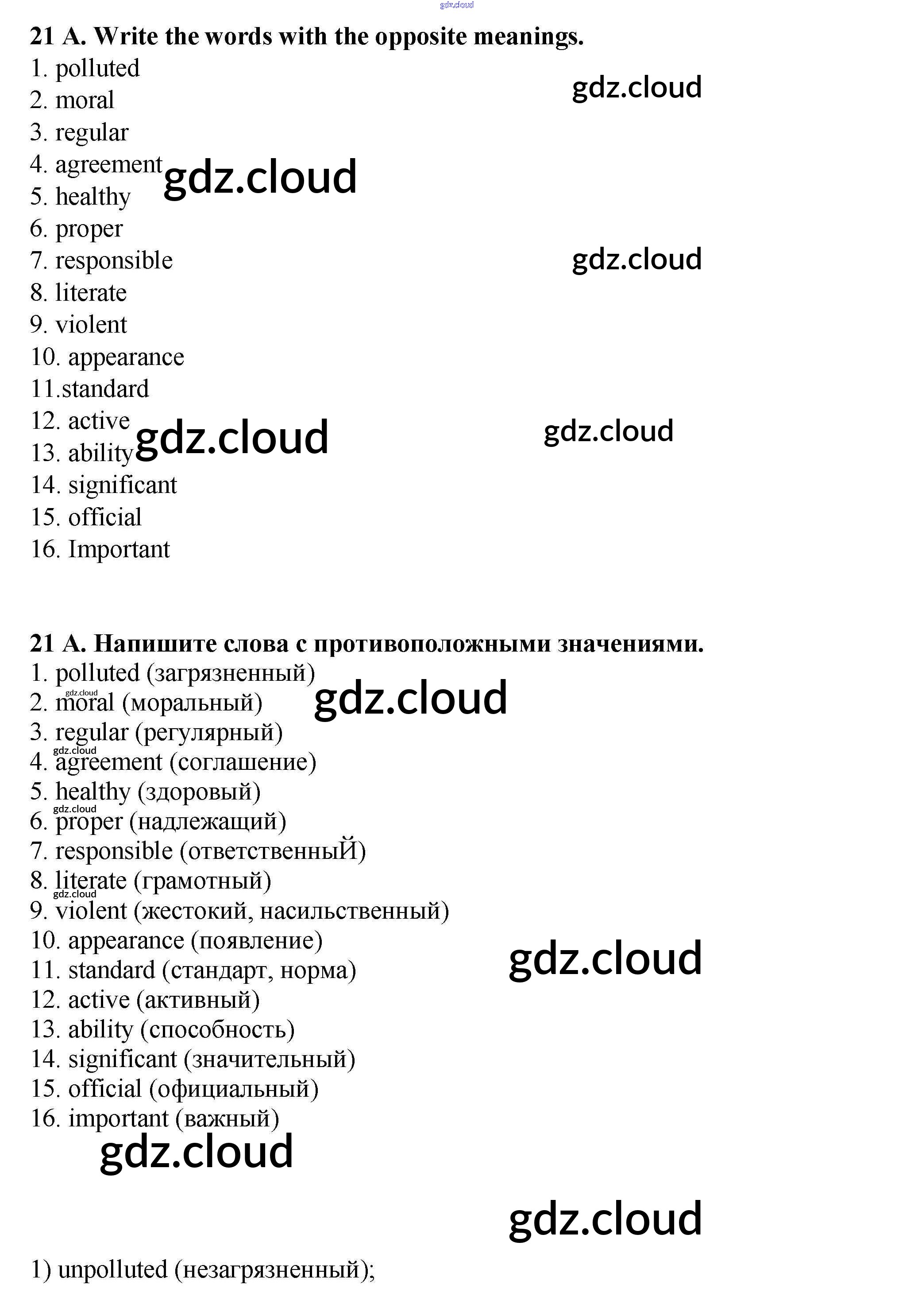 Ответ на задание 21 Рабочая тетрадь Английский язык за 9 (девятый) класс Афанасьева, Михеева, Баранова Rainbow 2016