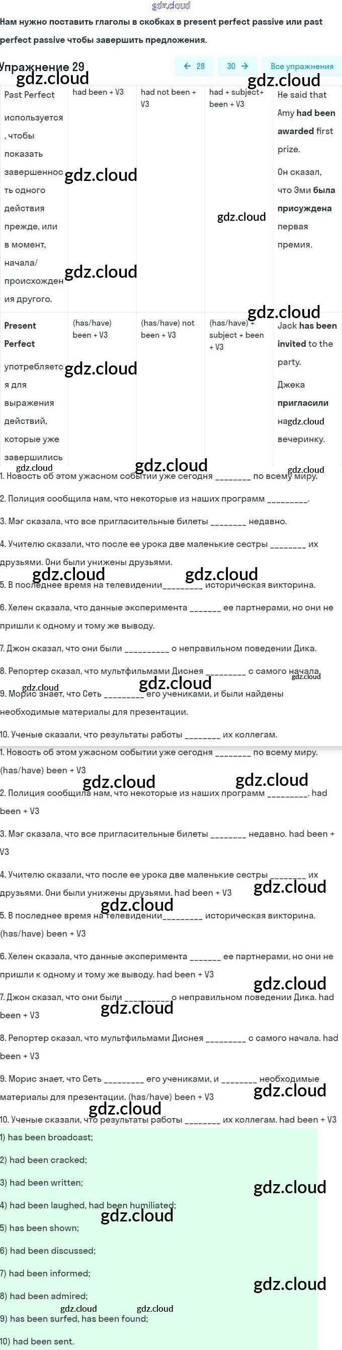 Ответ на задание 29 Рабочая тетрадь Английский язык  за 9 (девятый) класс Афанасьева, Михеева, Баранова Rainbow  2016