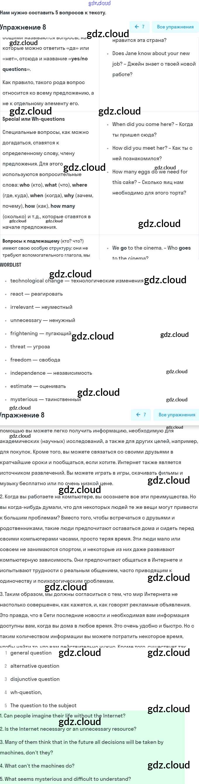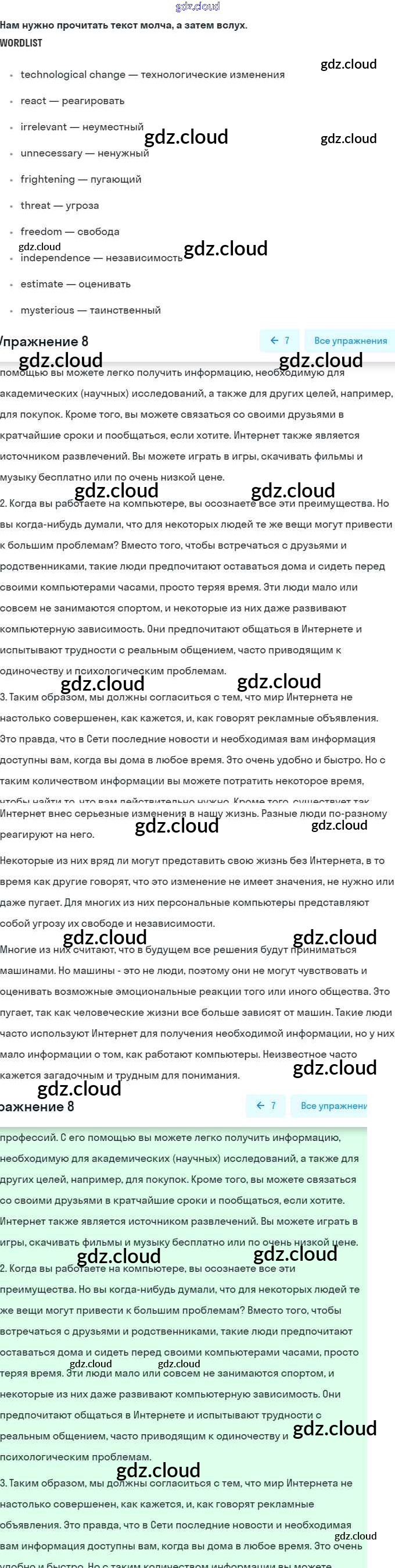 Ответ на задание 8 Рабочая тетрадь Английский язык за 9 (девятый) класс Афанасьева, Михеева, Баранова Rainbow 2016