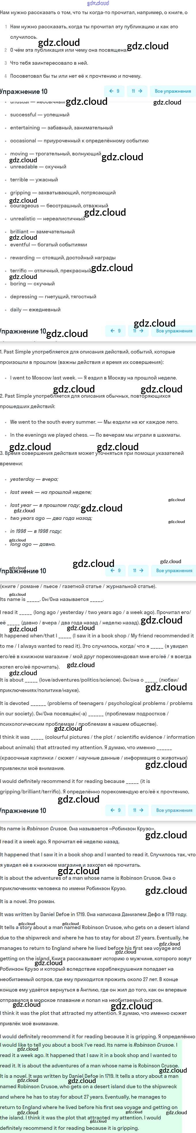 Ответ на задание 10 Рабочая тетрадь Английский язык за 9 (девятый) класс Афанасьева, Михеева, Баранова Rainbow 2016