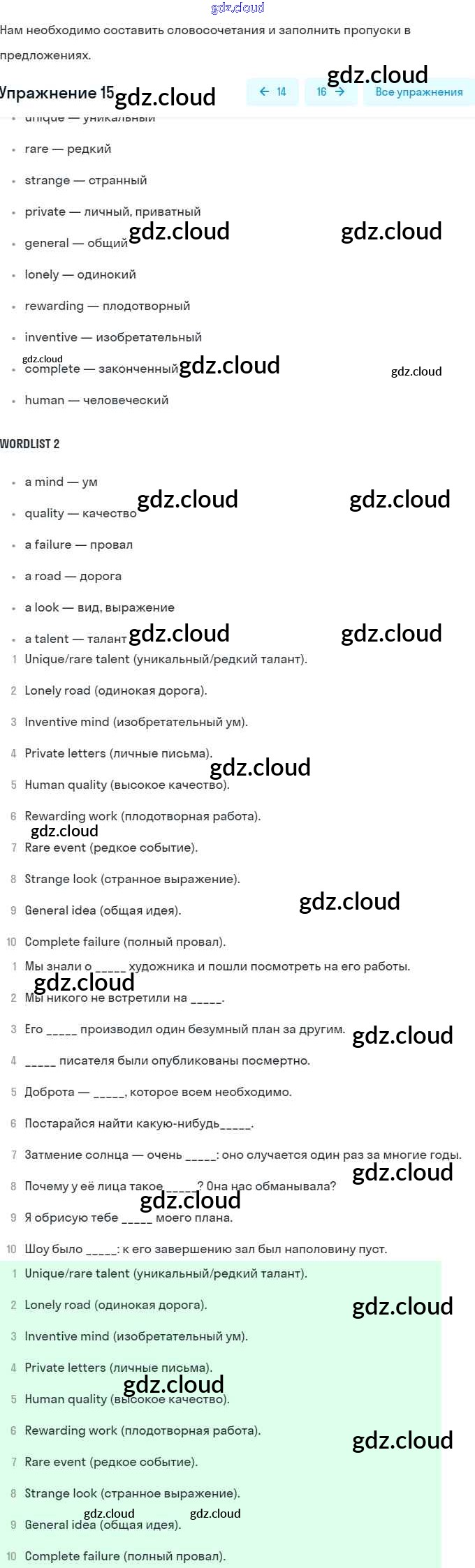 Ответ на задание 15 Рабочая тетрадь Английский язык за 9 (девятый) класс Афанасьева, Михеева, Баранова Rainbow 2016