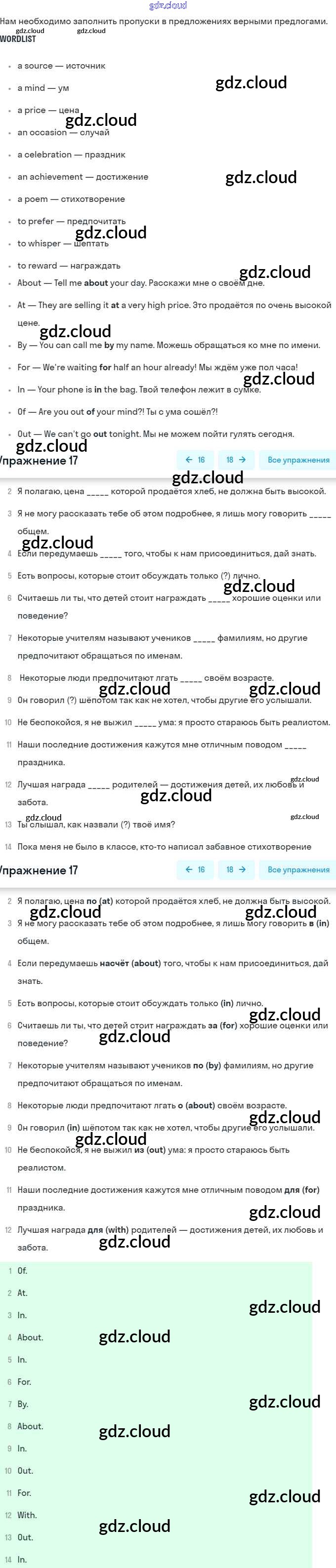 Ответ на задание 17 Рабочая тетрадь Английский язык за 9 (девятый) класс Афанасьева, Михеева, Баранова Rainbow 2016