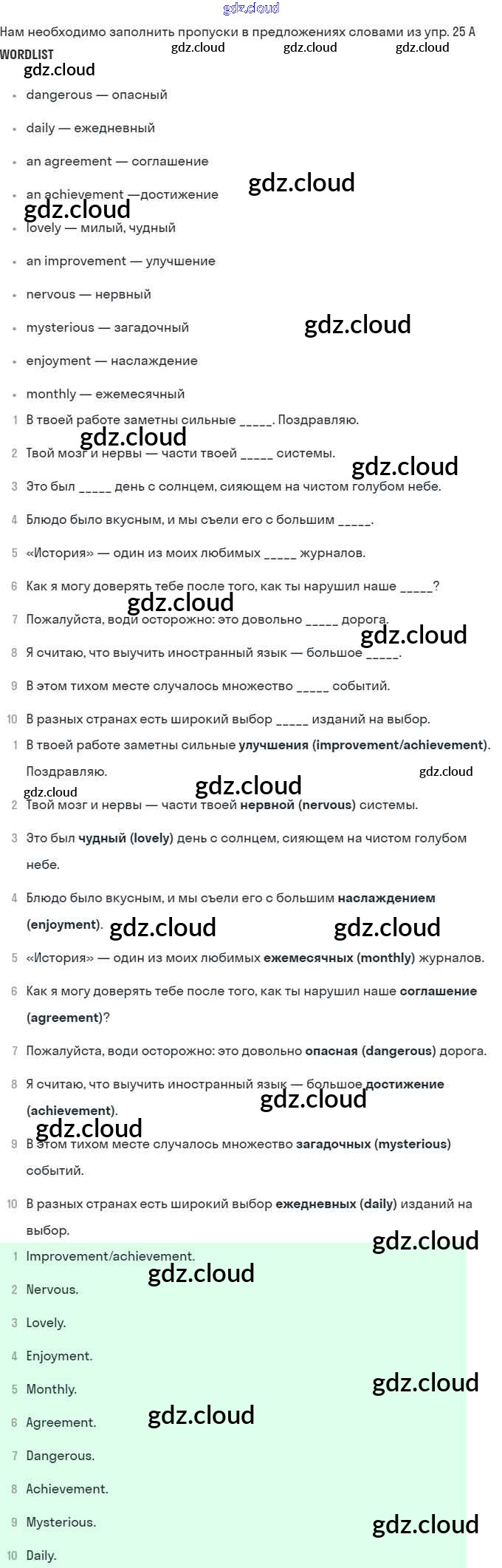 Ответ на задание 25 Рабочая тетрадь Английский язык за 9 (девятый) класс Афанасьева, Михеева, Баранова Rainbow 2016
