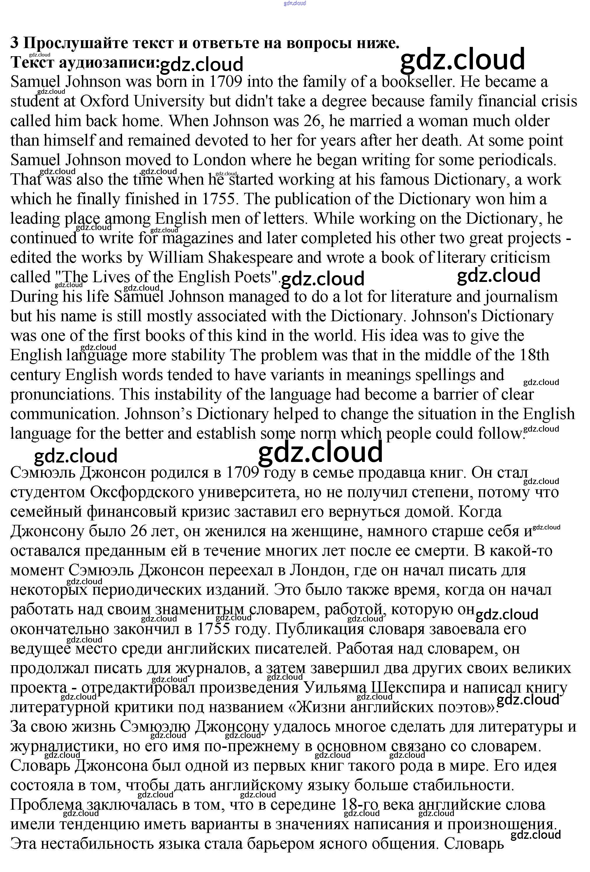 Ответ на задание 3 Рабочая тетрадь Английский язык за 9 (девятый) класс Афанасьева, Михеева, Баранова Rainbow 2016