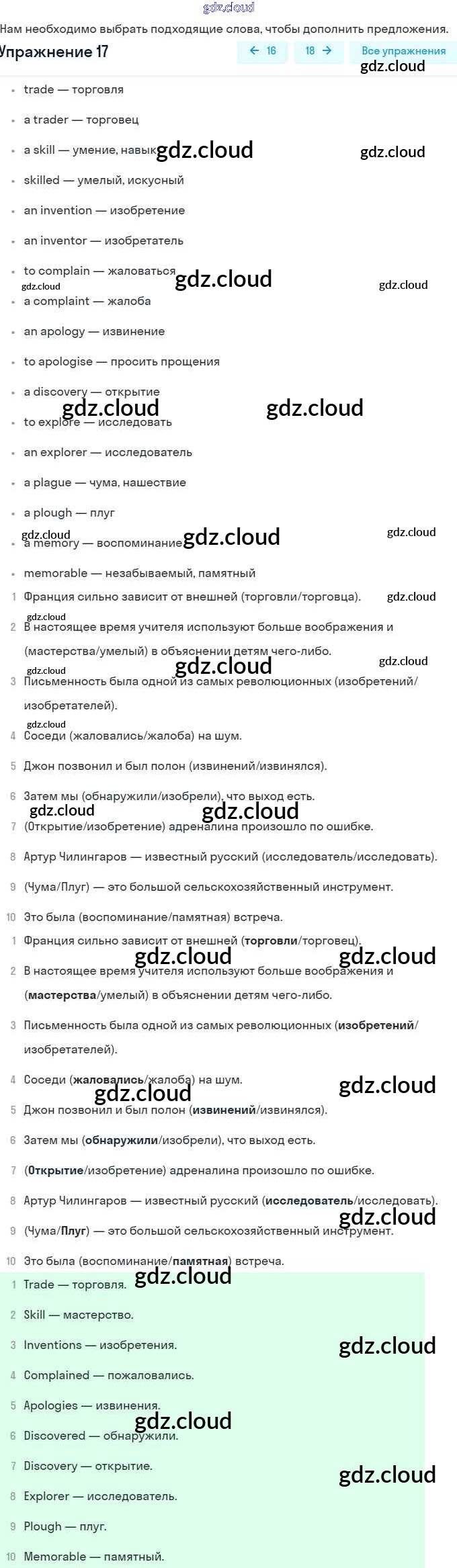 Ответ на задание 17 Рабочая тетрадь Английский язык за 9 (девятый) класс Афанасьева, Михеева, Баранова Rainbow 2016