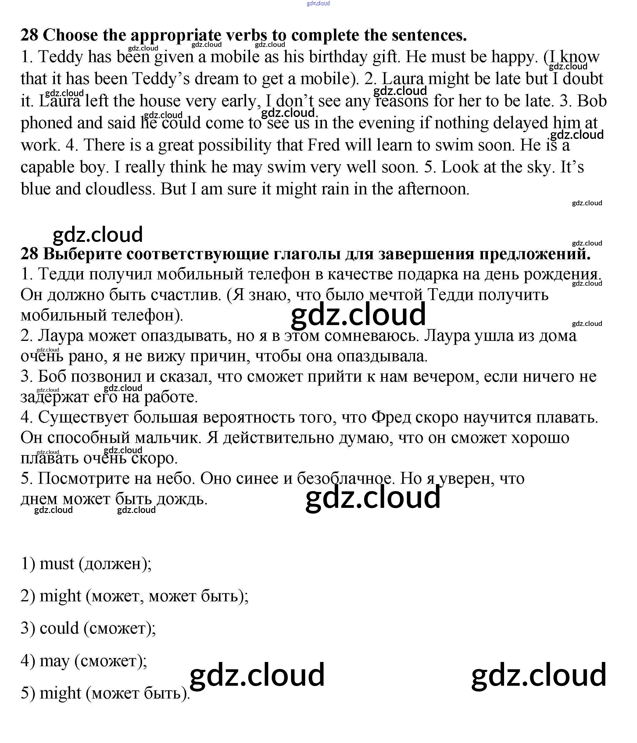 Ответ на задание 28 Рабочая тетрадь Английский язык за 9 (девятый) класс Афанасьева, Михеева, Баранова Rainbow 2016