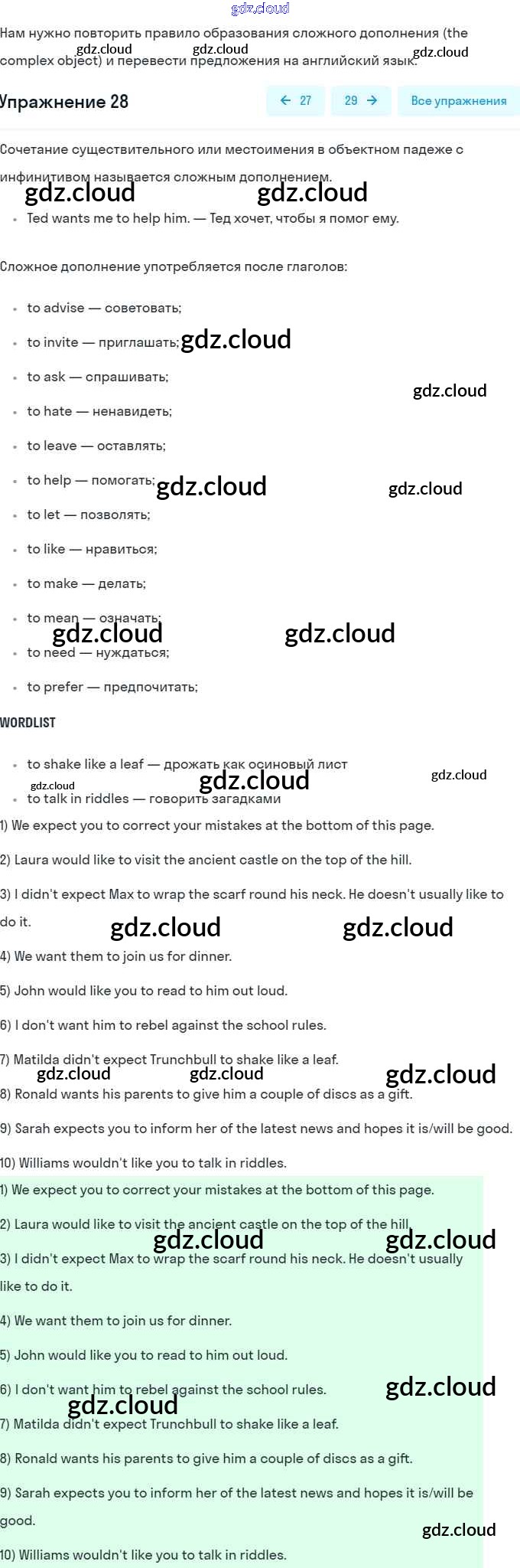 Ответ на задание 28 Рабочая тетрадь Английский язык за 9 (девятый) класс Афанасьева, Михеева, Баранова Rainbow 2016