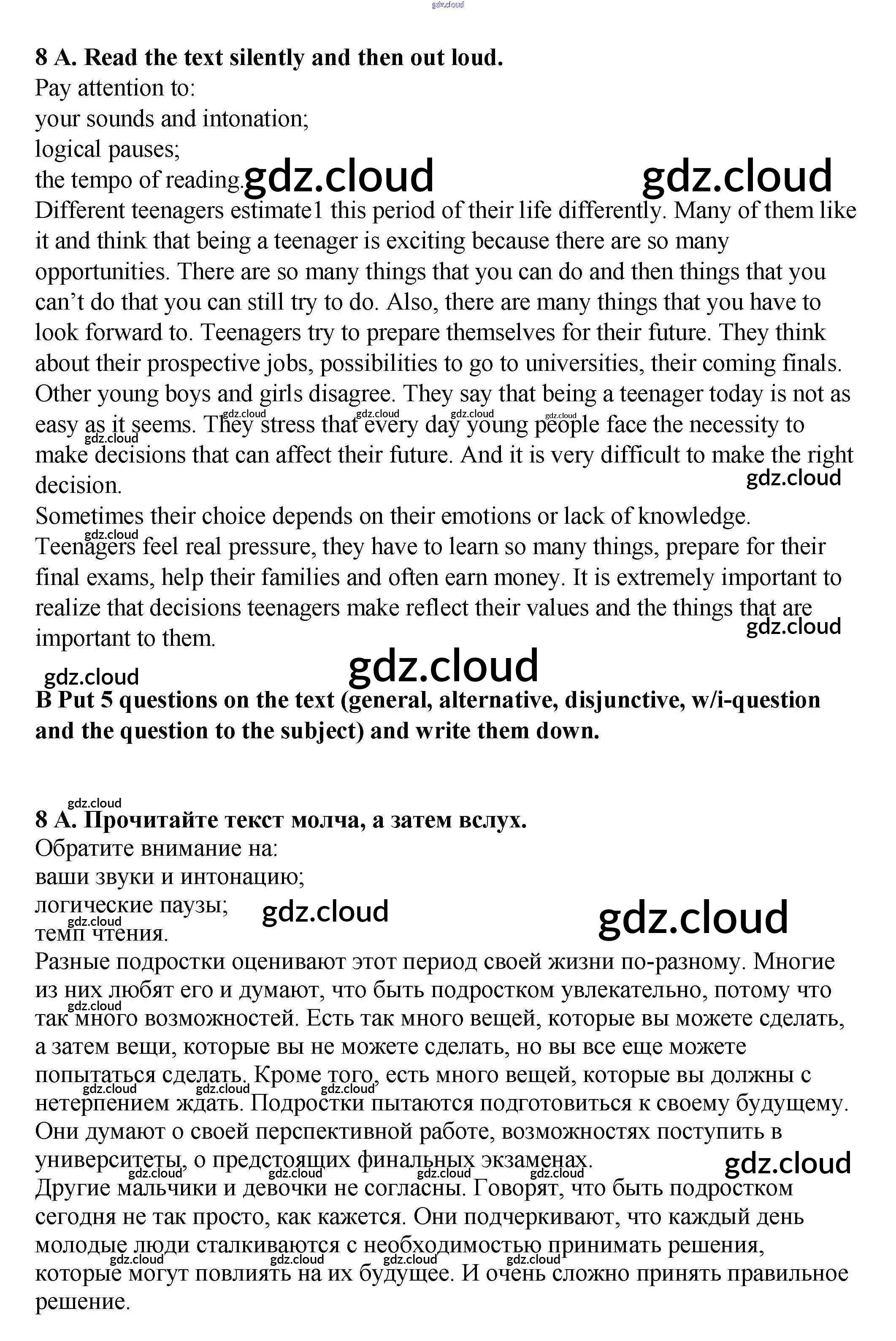 Ответ на задание 8 Рабочая тетрадь Английский язык за 9 (девятый) класс Афанасьева, Михеева, Баранова Rainbow 2016
