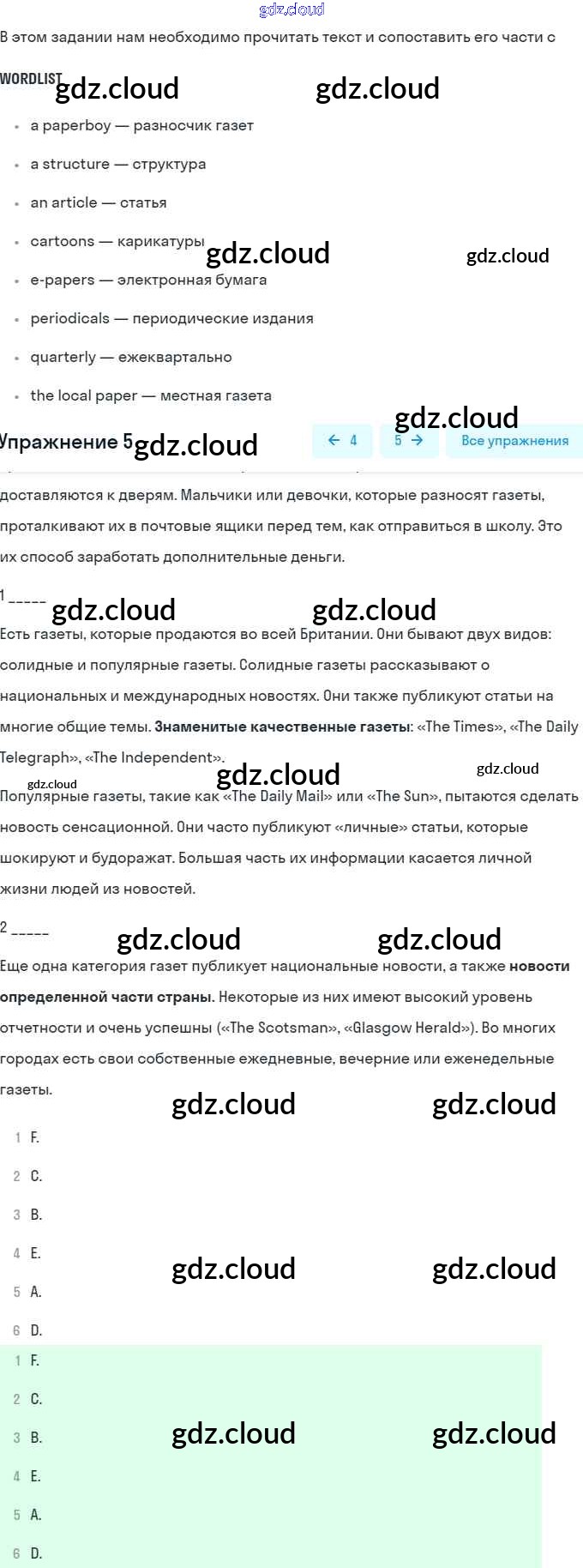 Ответ на задание 5 Учебник Английский язык за 9 (девятый) класс Афанасьева, Михеева, Баранова Rainbow 2017 Часть 1, 2