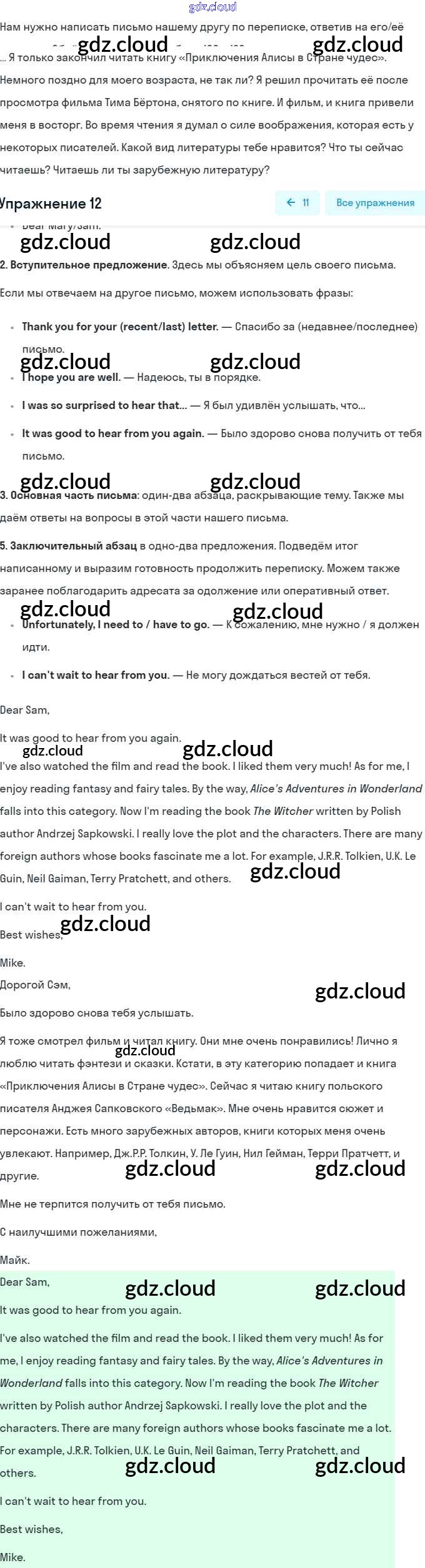 Ответ на задание 12 Учебник Английский язык за 9 (девятый) класс Афанасьева, Михеева, Баранова Rainbow 2017 Часть 1, 2
