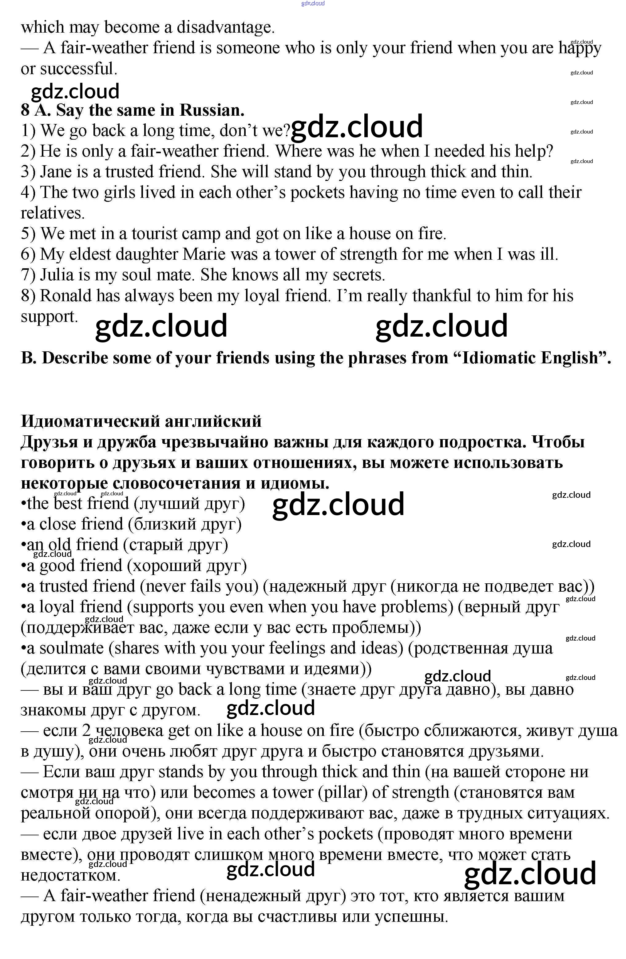 Ответ на задание 8 Учебник Английский язык за 9 (девятый) класс Афанасьева, Михеева, Баранова Rainbow 2017 Часть 1, 2