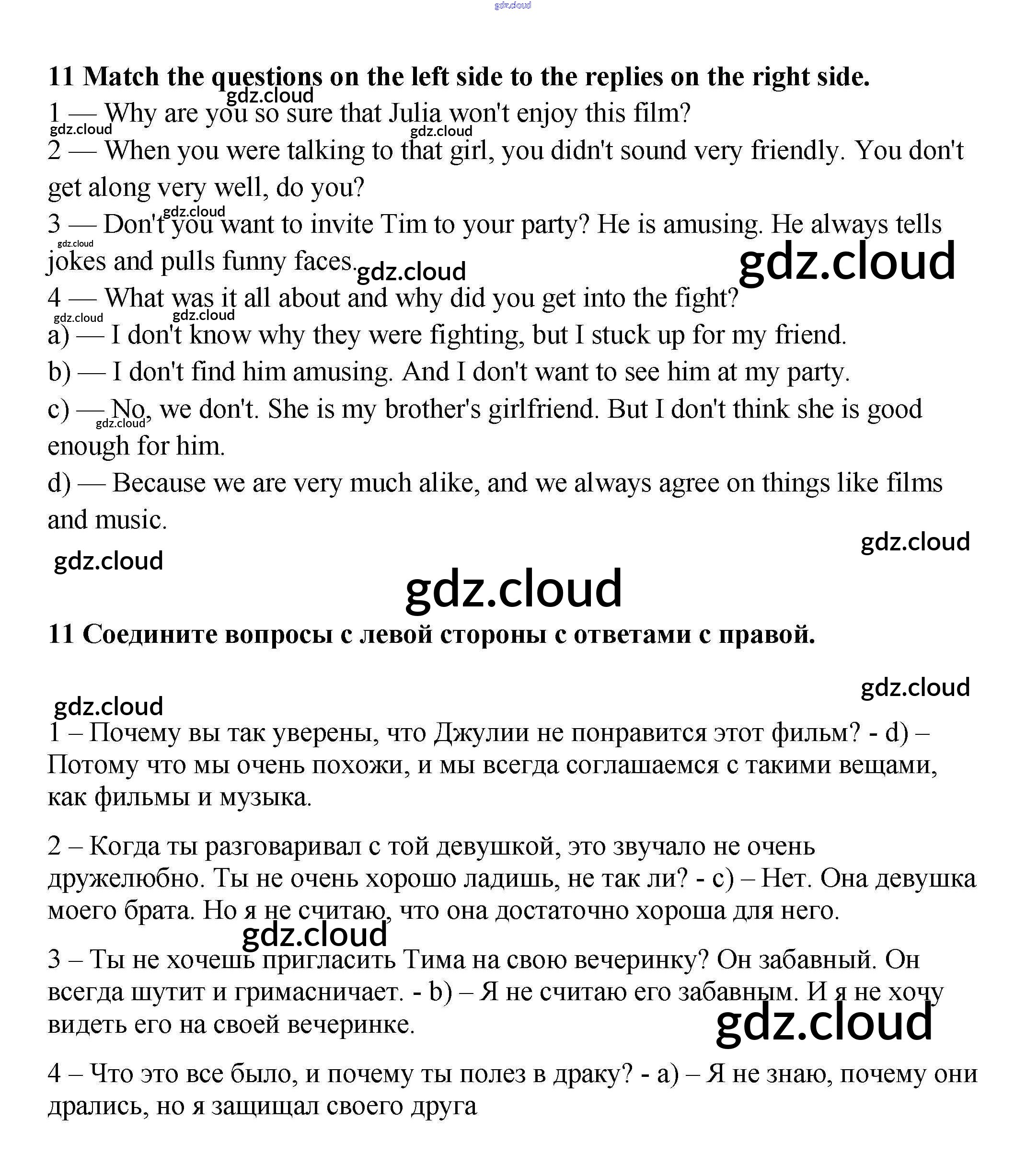 Ответ на задание 11 Рабочая тетрадь Английский язык за 9 (девятый) класс Биболетова, Бабушис, Кларк, Морозова Enjoy English 2015 Часть 1
