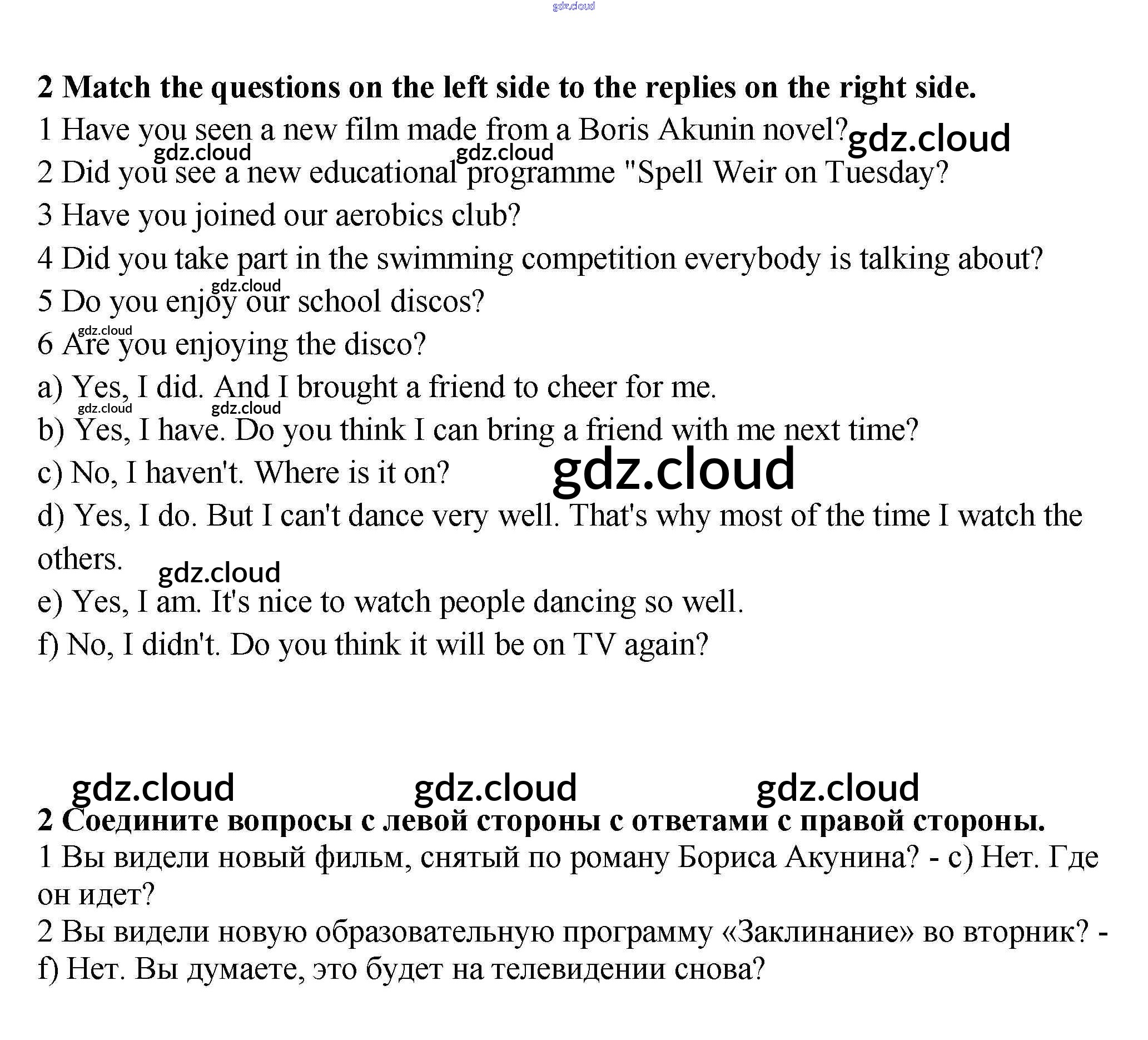 Ответ на задание 2 Рабочая тетрадь Английский язык за 9 (девятый) класс Биболетова, Бабушис, Кларк, Морозова Enjoy English 2015 Часть 1