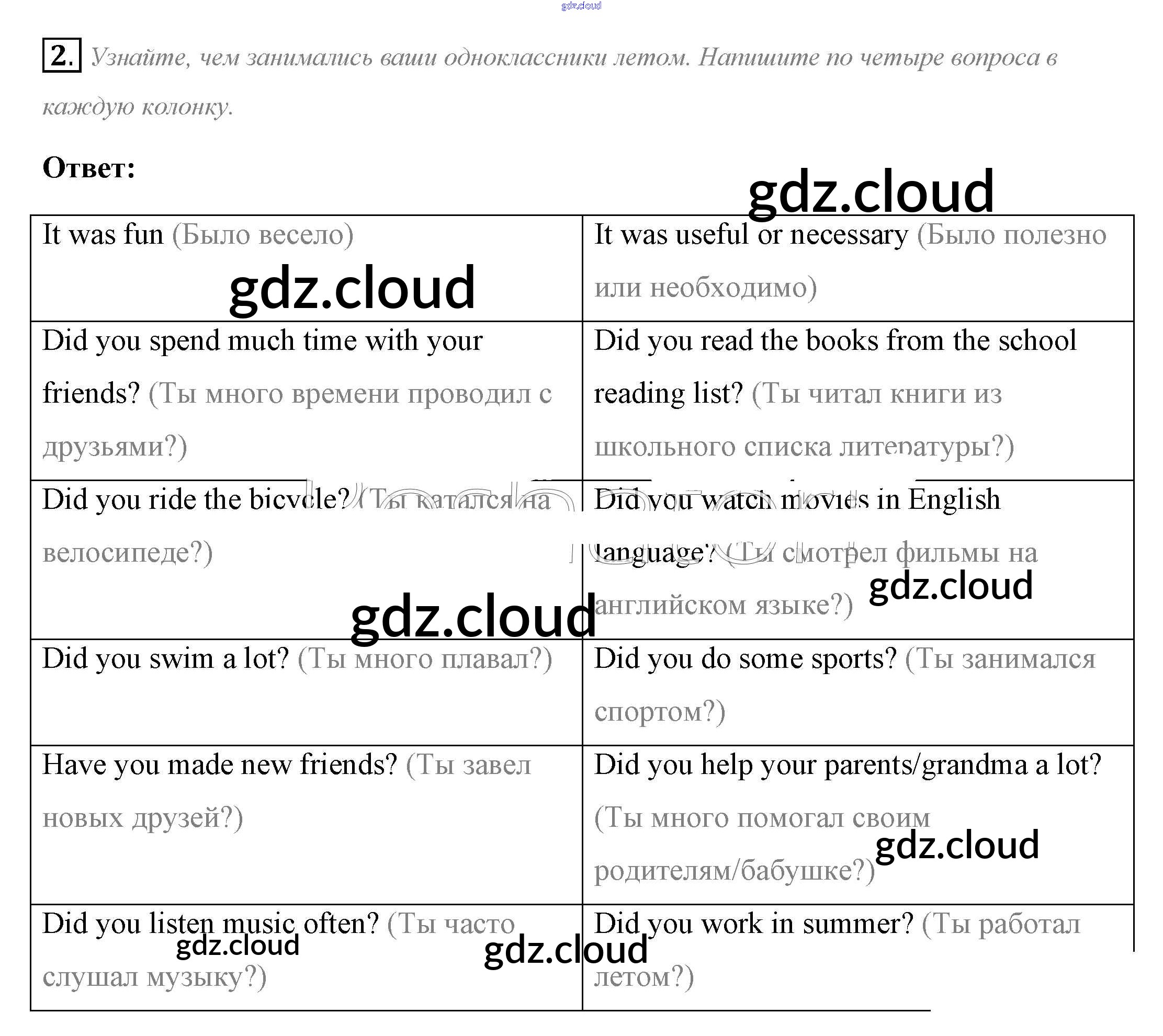 Ответ на задание 2 Рабочая тетрадь Английский язык за 9 (девятый) класс Биболетова, Бабушис, Кларк, Морозова Enjoy English 2017