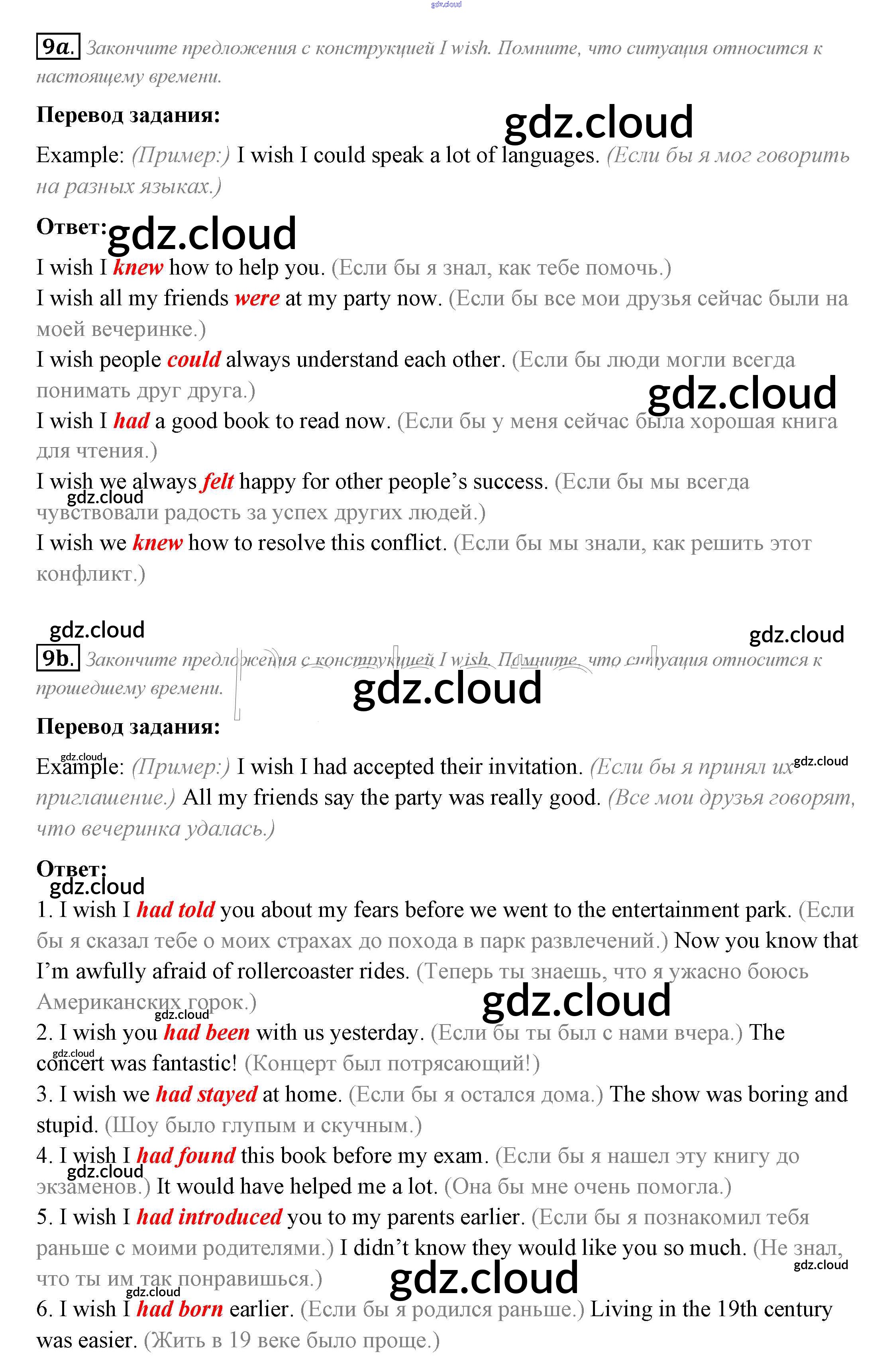 Ответ на задание 9 Рабочая тетрадь Английский язык за 9 (девятый) класс Биболетова, Бабушис, Кларк, Морозова Enjoy English 2017