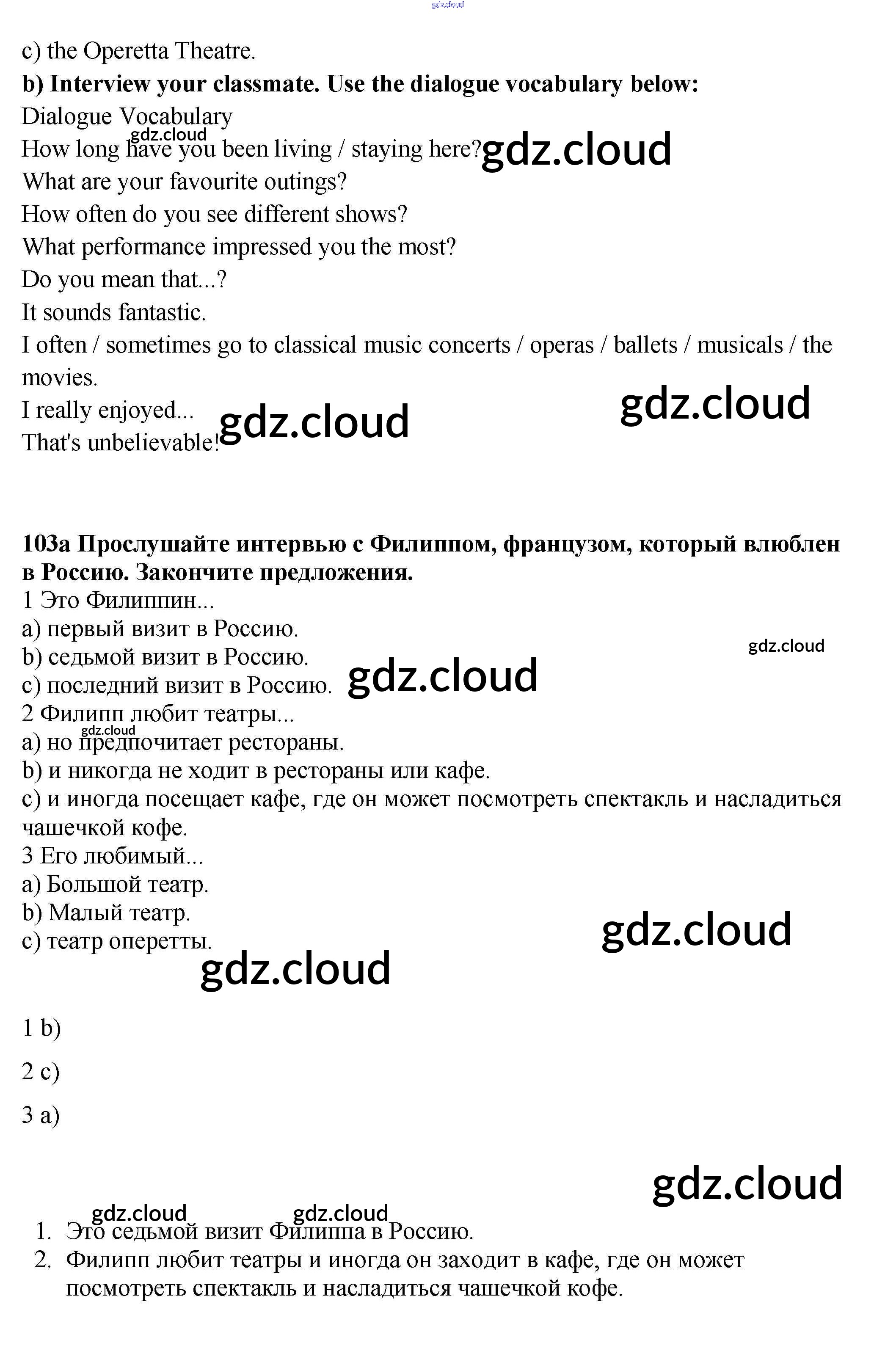 Ответ на задание 103 Учебник Английский язык за 9 (девятый) класс Биболетова, Бабушис, Кларк, Морозова Enjoy English 2014